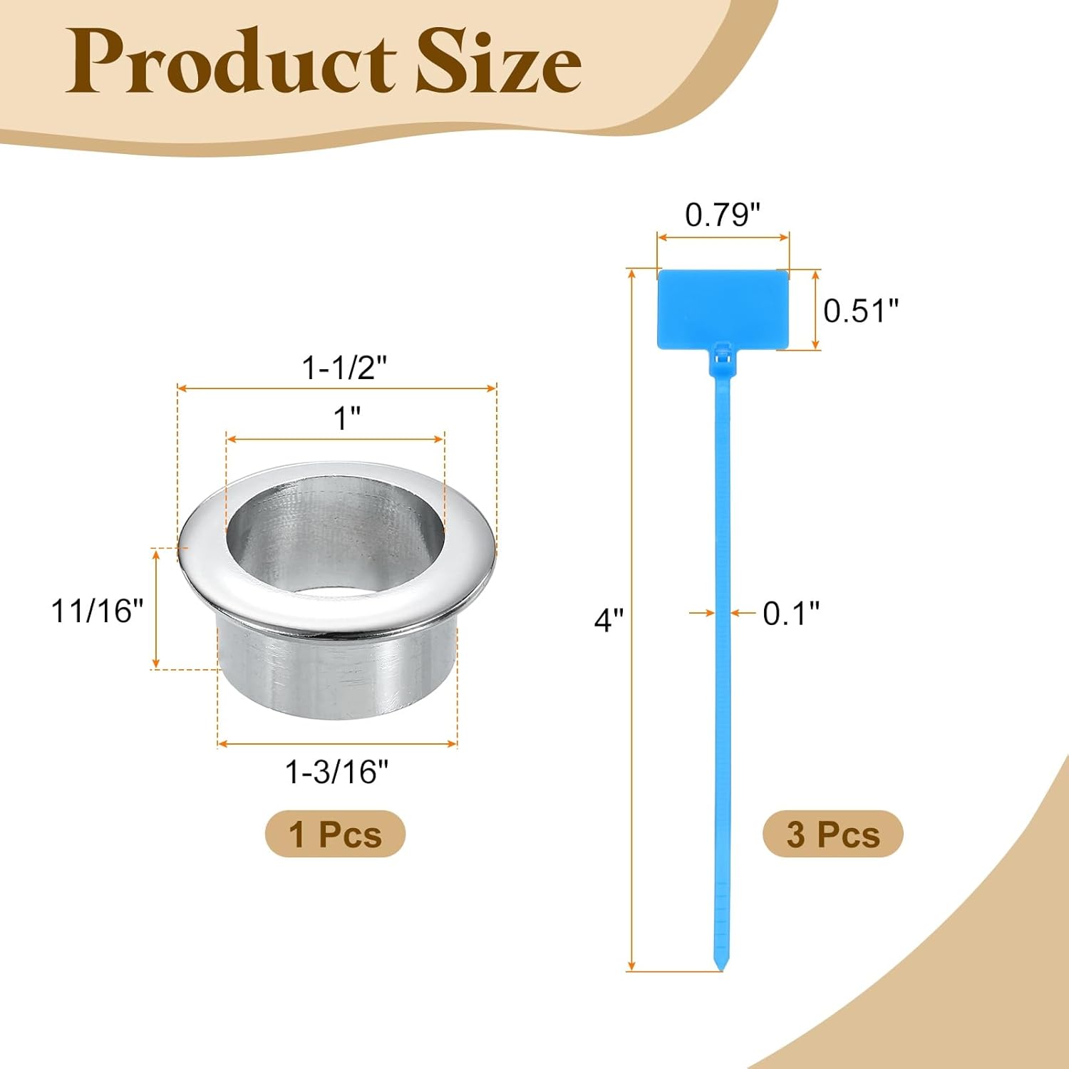 - Size & Package: This grommet fits a hole of 30mm/ 1-3/16 inch diameter, the inner diameter is 25mm/ 1 inch, the outer diameter is 38mm/1-1/2 inch, and the height is 17mm/11/16 inch. You will receive 1ps grommets and 3ps marked cable ties