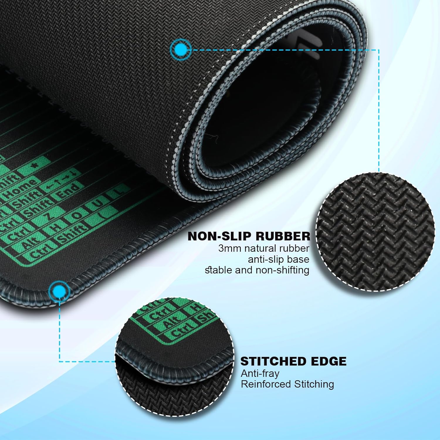- LONG-LASTING DESIGN TO STAY LIKE NEW: High-resolution, wear-resistant ink printing ensures that shortcut patterns are clear and not easy to fade or peel off. Combined with double stitching technology, the durability of the desk pad is greatly enhanced, allowing it to maintain a good condition for a long time.