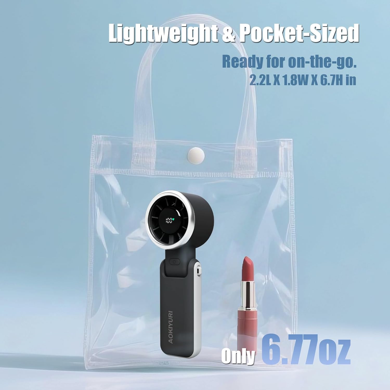- 180° Foldable Portable Handheld Fan w/Anti-Loss Lanyard ✓ Travel-Ready Compact - Folds to phone-size (6.6×2.1in) & weighs just 6.8oz ✓ Heatwave Warrior - Cools for 16hrs in 104°F temps (lab tested) - ideal portable fan for travel ✓ No-Sweat Design - IPX4 splash proof for makeup fan handheld sessions