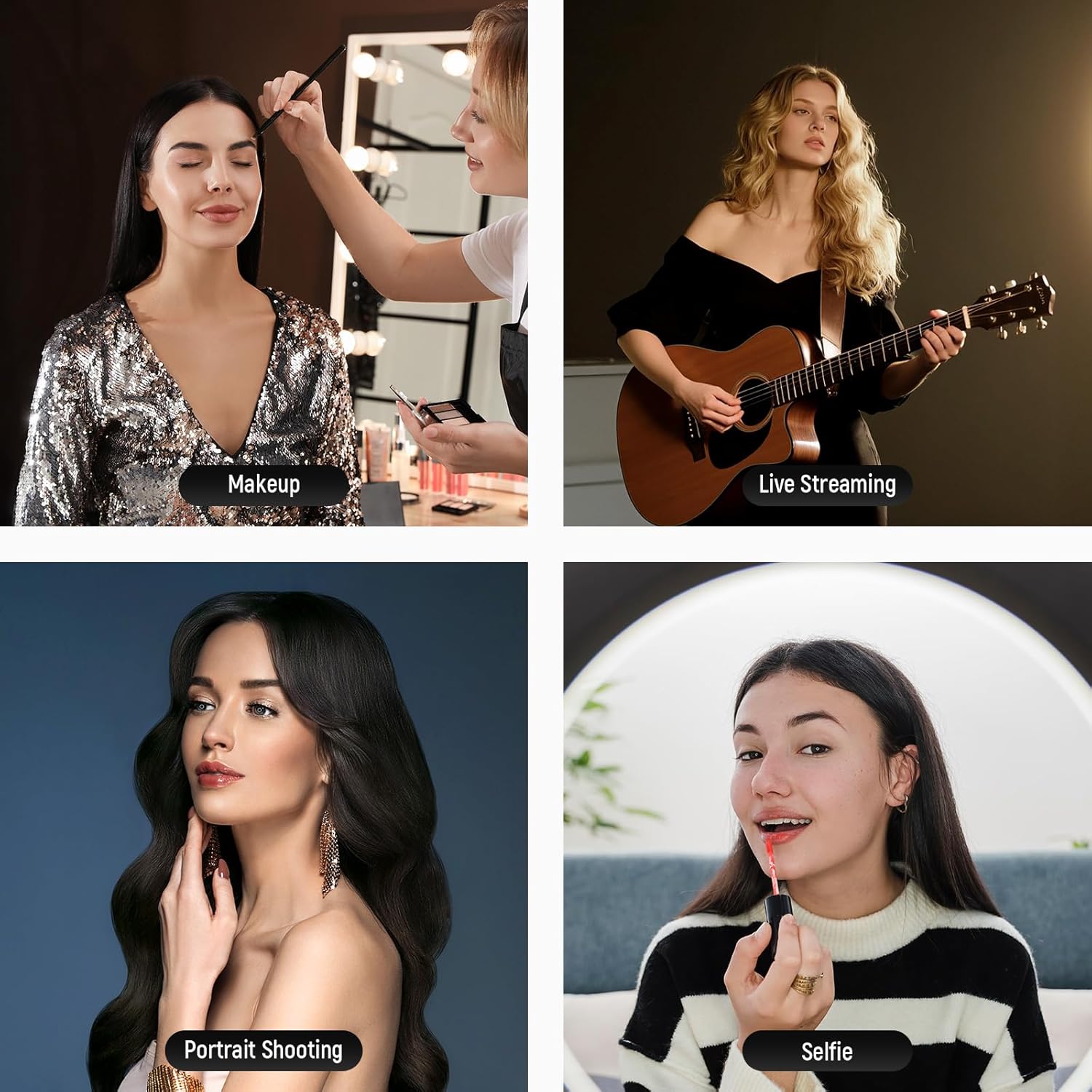 - 【3 Phone Holders & Reverse Charging】 Attach the cell phone holders to the tall portable ring light via the cold shoe mounts. For up to 3 phones simultaneously, compatible with iPhone for selfies, filming, video recording, or streaming on multi platforms. With 2 USB output ports (5V 2A), reverse charging your devices for uninterrupted creation, essential photography lighting accessories kit for influencers and must have photo gear for social media content creators, streamers