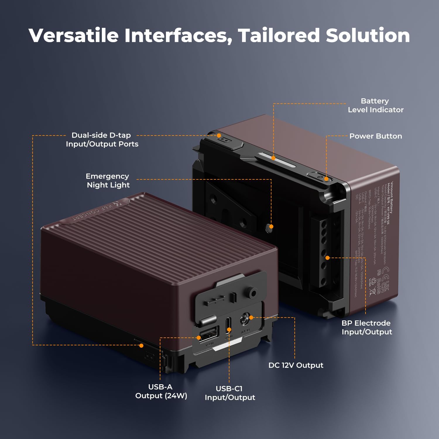 - 99Wh V Mount Battery Compatibility: This V-Mount Battery features two D-TAP ports, USB-C, USB-A, 12V (5.5x2.5mm), BP, for camera, camcorder, monitor, LED video lights, tablet, phone and laptop, etc