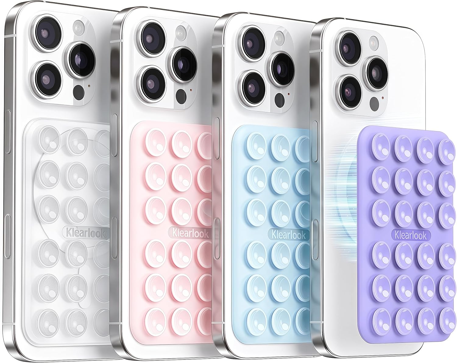 Klearlook 4PCS Magnetic Suction Phone Mount for MagSafe Case, Sticky Phone Grip for iPhone, Removable Hands-Free Selfie/Video for TikTok Influencers, (Clear & Light Pink & Light Blue & Lavender)
