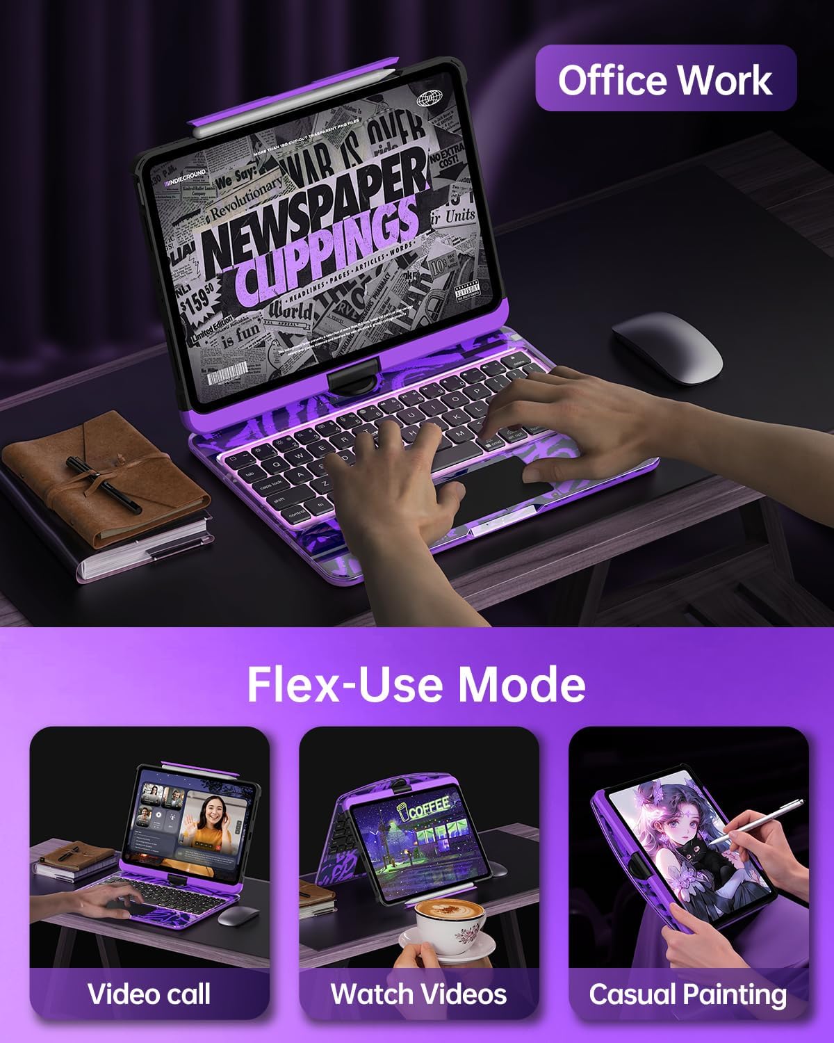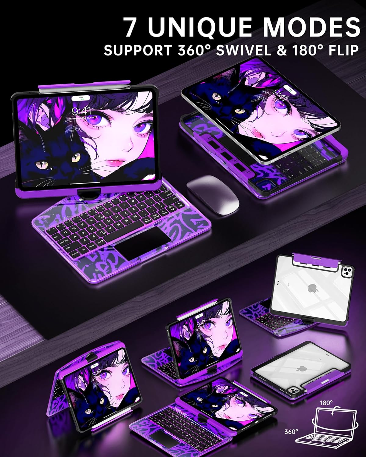 - Special Feature : 360° horizontal rotation & 180° opening-closing, 7-Color Keyboard Backlight with 3-Level Brightness Adjustment, Clear back showcases iPad logo, Hotkeys and Media Keys, Multi-Gesture Touchpad 360° horizontal rotation & 180° opening-closing, 7-Color Keyboard Backlight with 3-Level Brightness Adjustment, Clear back showcases iPad logo, Hot… See more