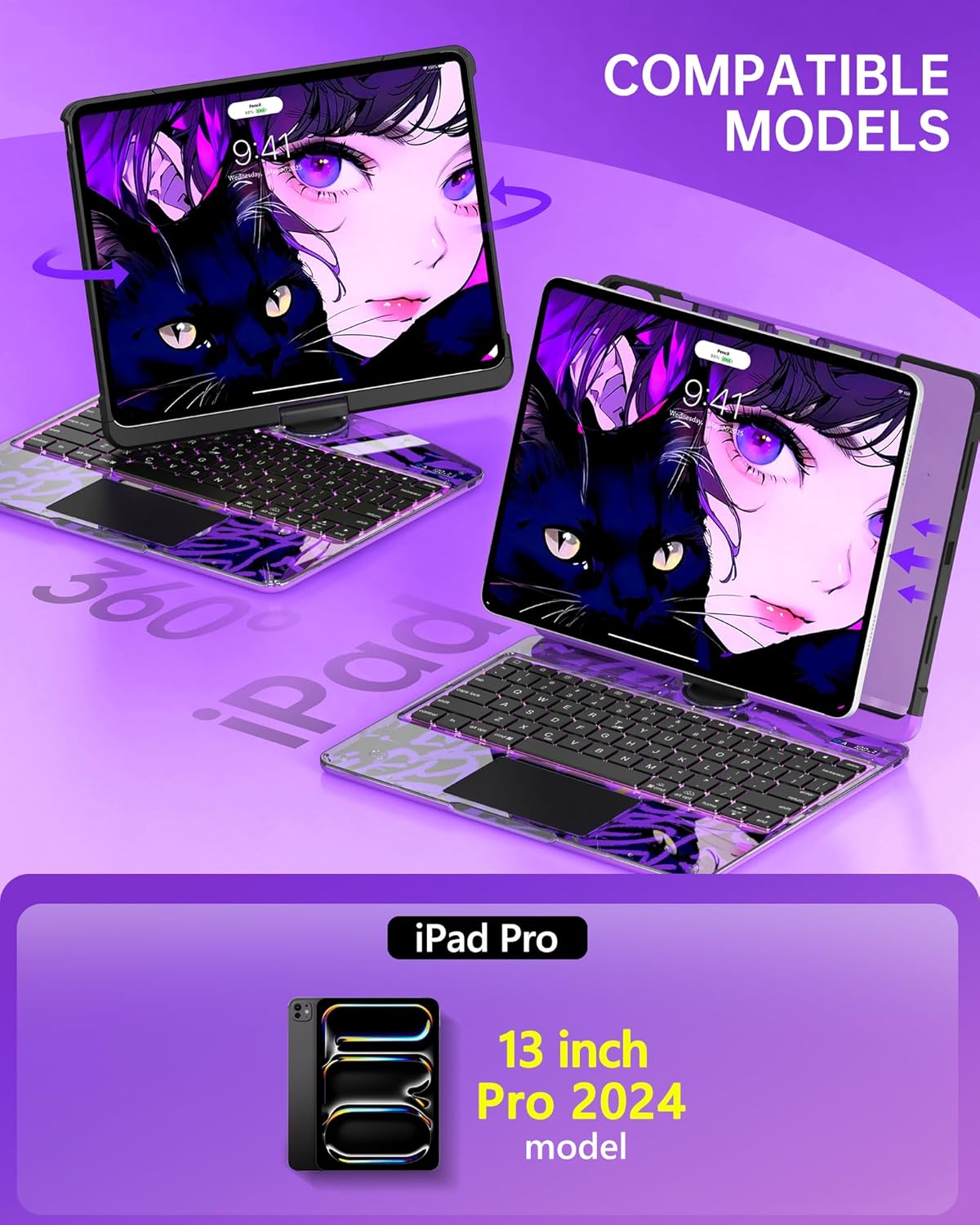 Intermerge for Clear iPad Pro 13" (M4) 2024 Case with Keyboard, 360° Multi-Touch Trackpad, 7-Color RGB Backlit Keyboard, Pencil Holder, Type-C, Power Indicator - Neon Pulse