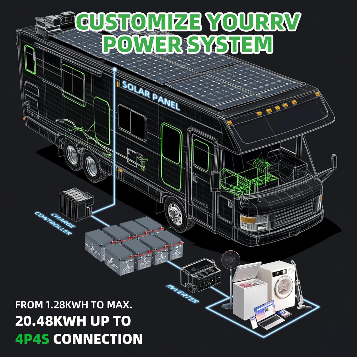 - 【Scalable Power for Demanding Systems】 Flexibly configure up to 4S (12V/12.8kWh) or unlimited parallel connections. Flat voltage curve maintains 95% capacity above 12.8V, providing 50% more runtime than lead-acid batteries. Ideal for high-drain applications up to 200A continuous discharge.