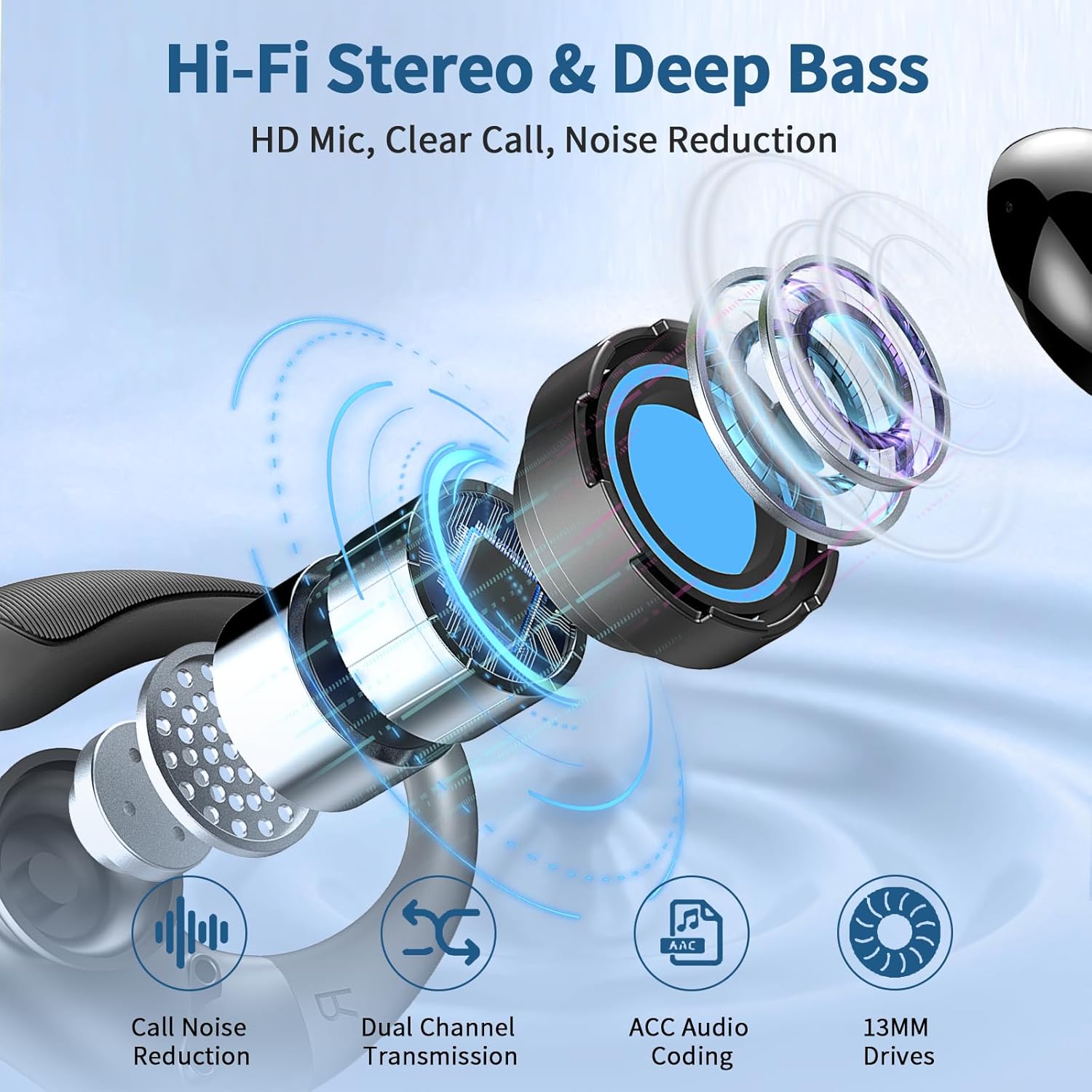 Wireless Earbuds, 2025 Bluetooth 5.4 Headphones Sport, 50Hrs HiFi Stereo Deep Bass Over-Ear buds with ENC Noise Cancelling Mic, IP7 Waterproof & LED Display Earphones with Earhooks for Workout/Running