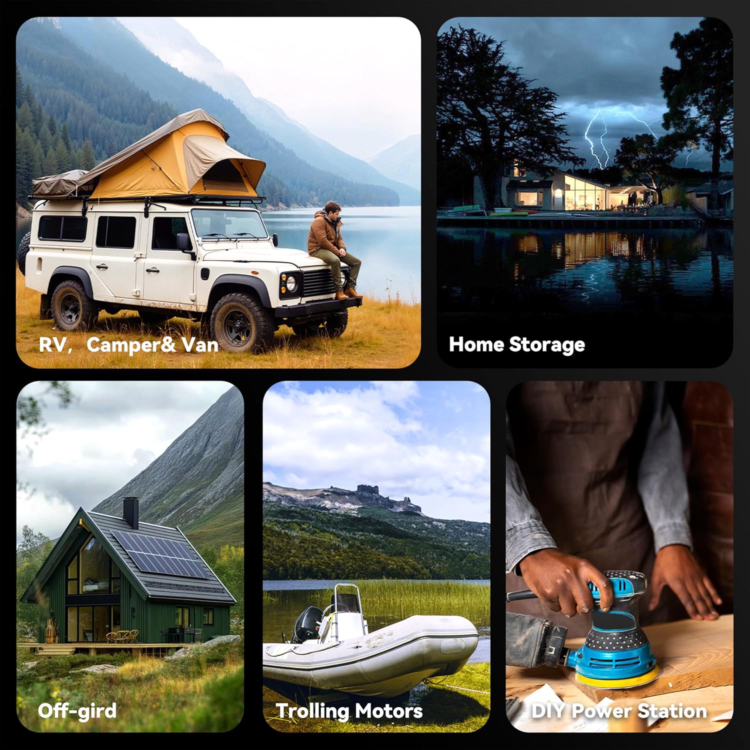 - 【MULTI-PURPOSE ENERGY – RUNS EVERYTHING YOU NEED】 Use the pair across solar setups, trolling motors, marine systems, RVs, travel trailers, emergency backup, and DIY power builds. Power a CPAP up to 84h, a fridge for 34h, or light up your off-grid cabin with confidence.