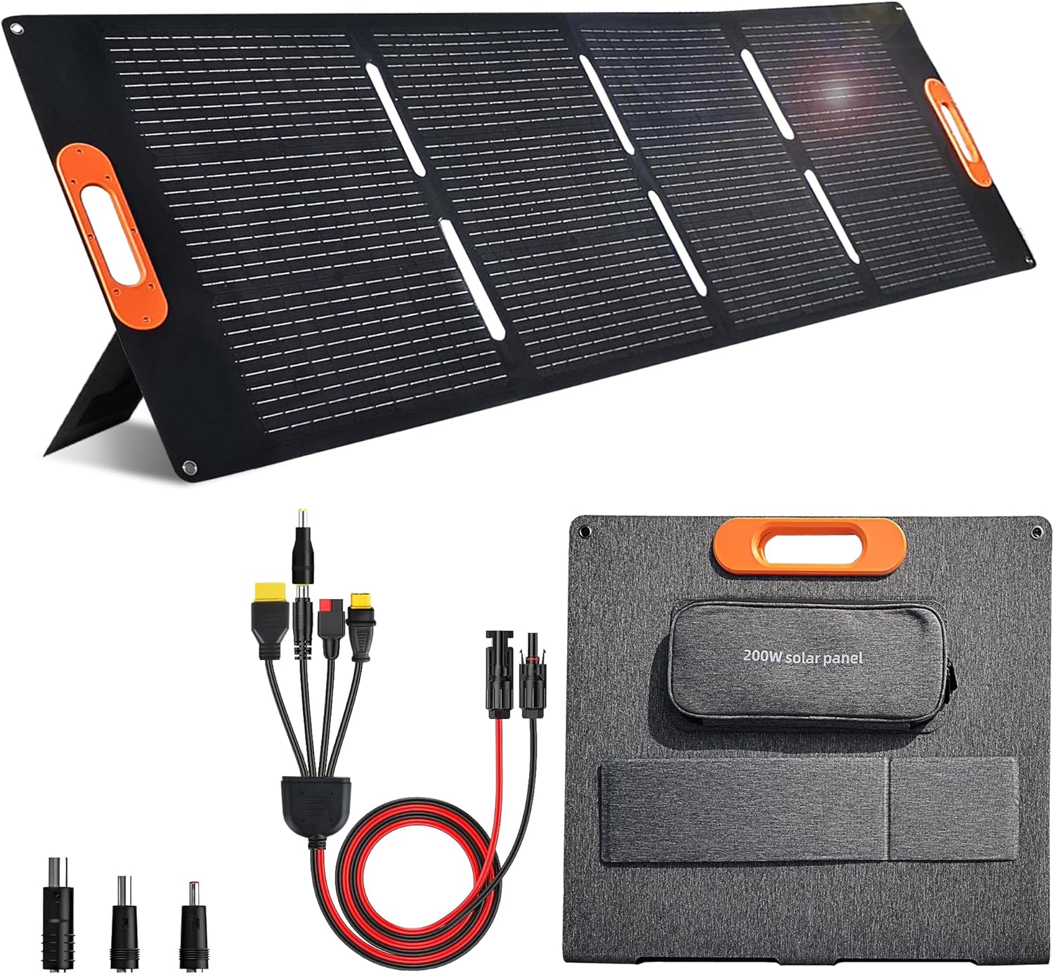 200W Portable Solar Panel for Power Station Generator,200 Watt Foldable Solar Panel Charger with MC4 Output,3-in-1 DC Connector,23.5% High Efficiency for Outdoor Camping RV Travel(200W)