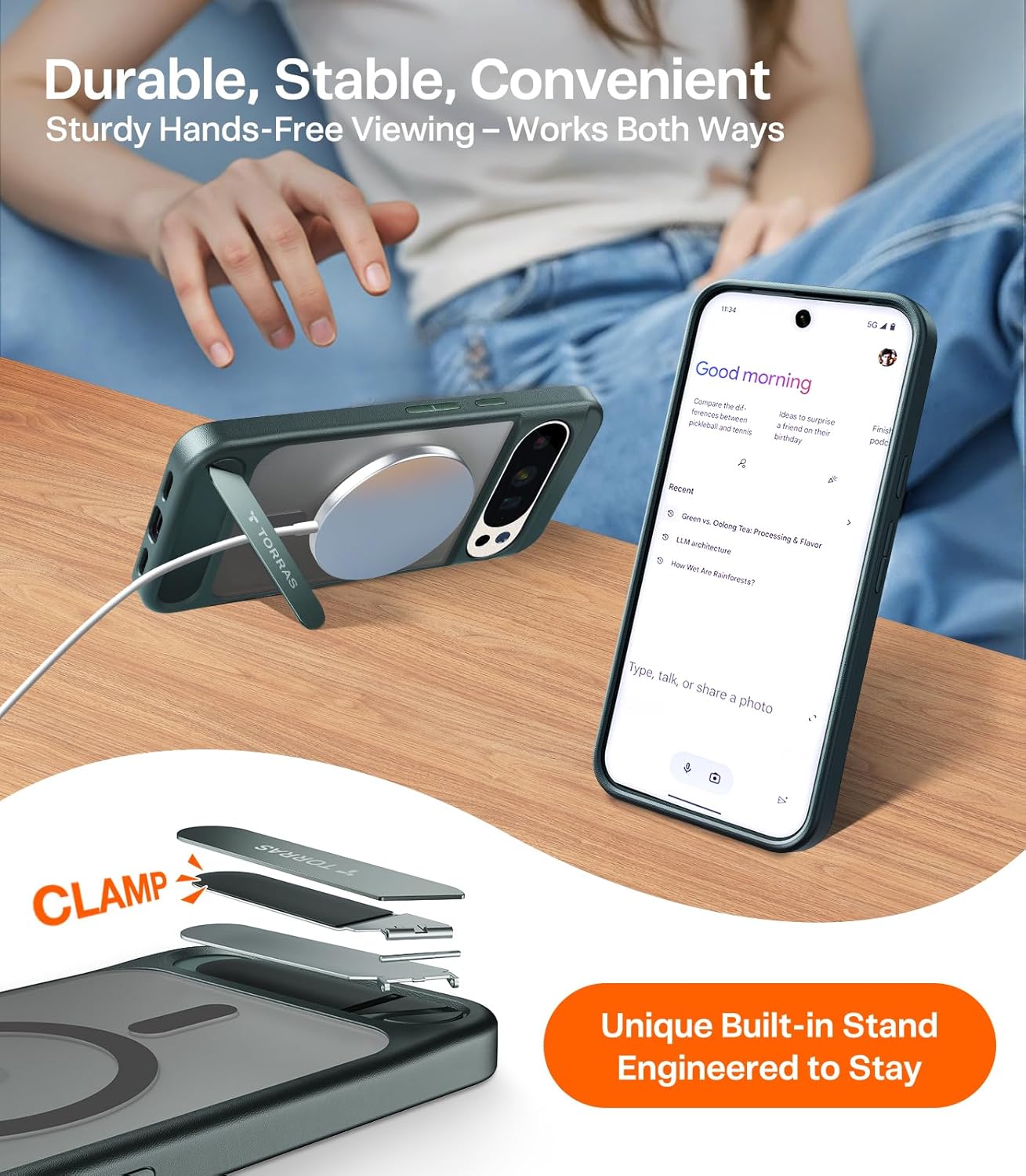 - Built-In Kickstand, Flexible & Reliable: The high-strength kickstand case for Google Pixel 10 Pro XL features premium steel hinges tested over 30,000 folds. Enjoy both vertical and horizontal angles for watching videos, video calling, or hands-free productivity — whether at home or on the go