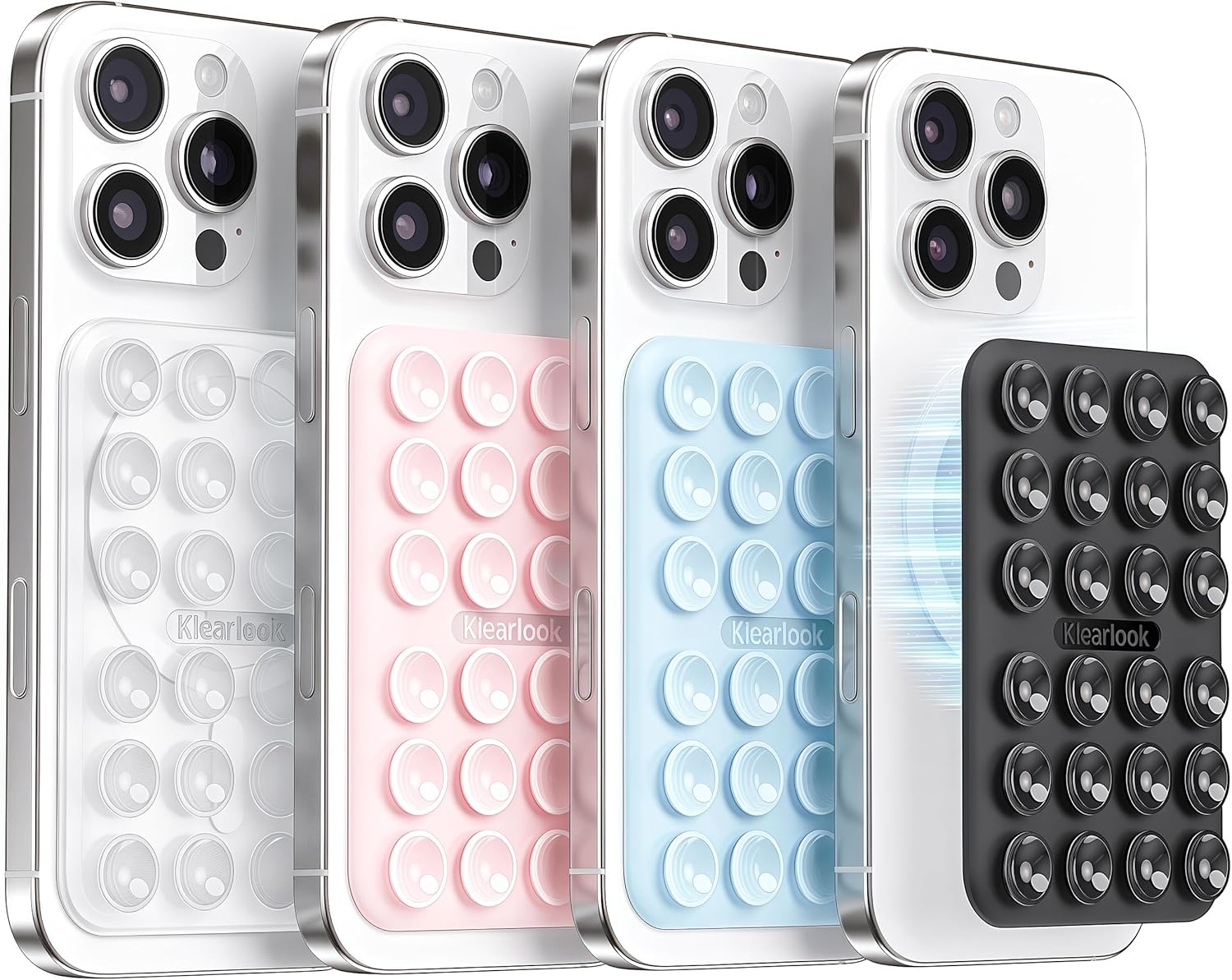 Klearlook 4PCS Magnetic Suction Phone Mount for MagSafe Case, Sticky Phone Grip Holder for iPhone, Removable Hands-Free Selfie/Video for TikTok Influencers, (Clear & Light Pink & Light Blue & Black)