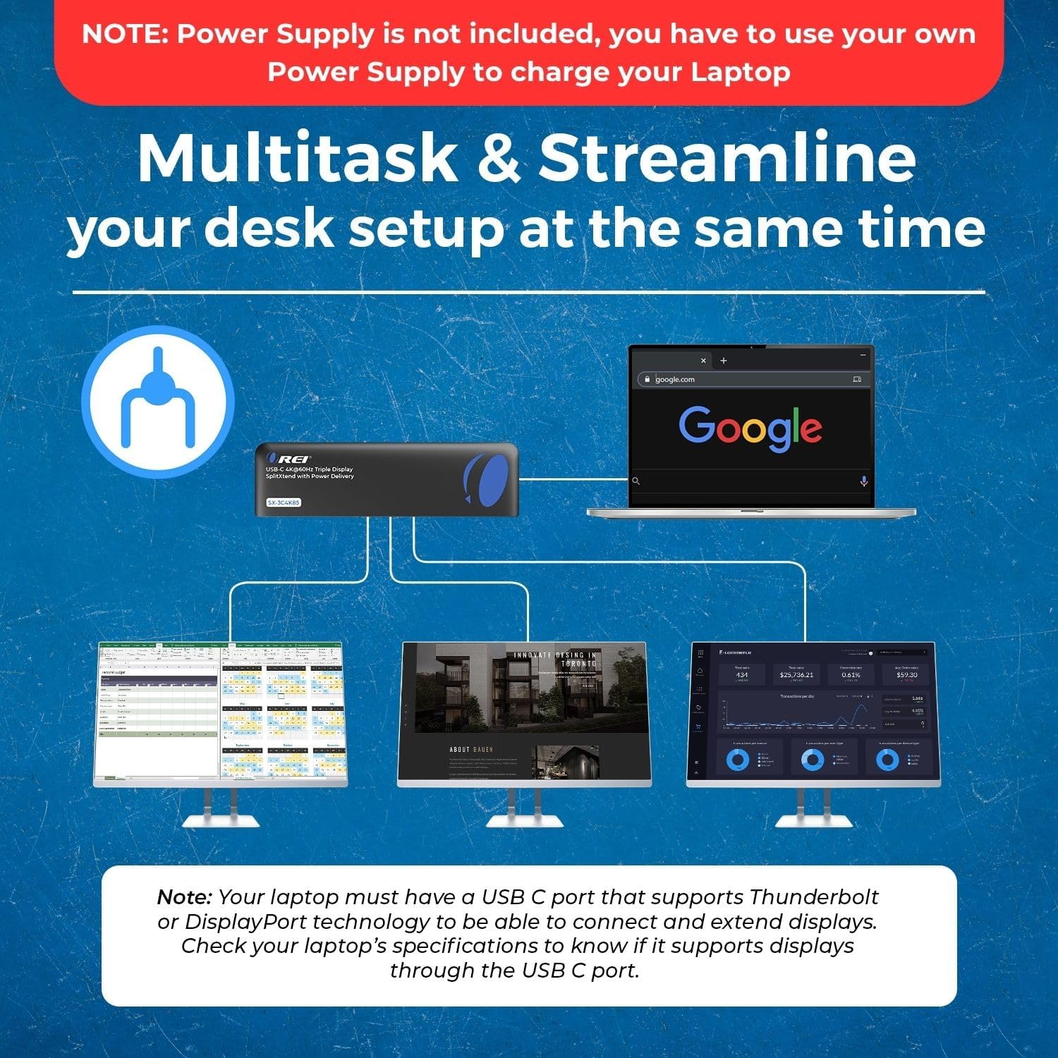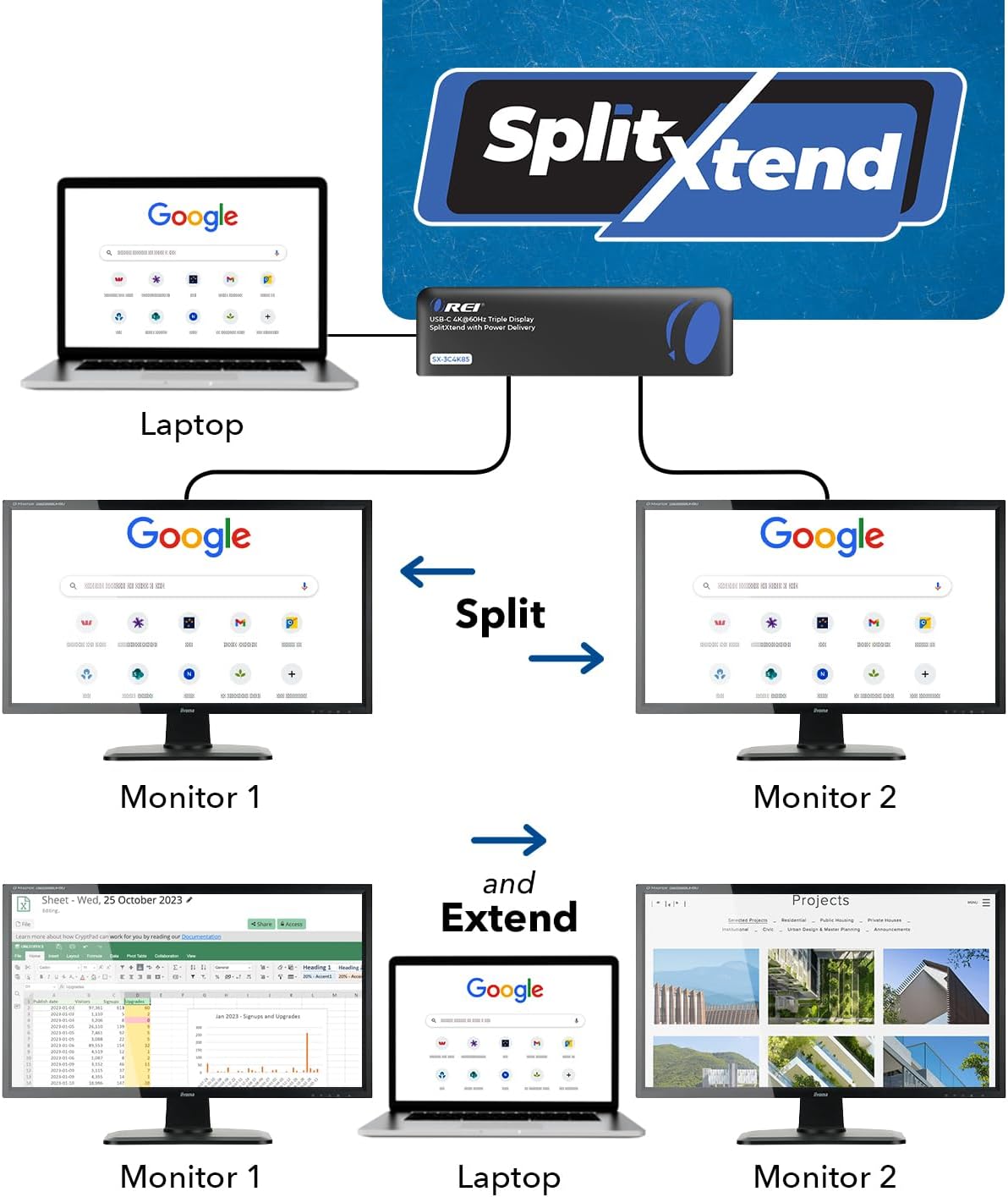 - SPLITEXTEND Triple-Monitor Adapter – USB-C to 2× HDMI + 1× DisplayPort splitter uses SPLITEXTEND technology to split and extend three 1080p screens on Windows (2 HDMI + 1 DP); However on MAC it offers one extended display plus two mirrored outputs, boosting multitasking productivity. Gigabit Ethernet (1000 Mbps) delivers stable, low-latency network performance, while four USB 3.0 ports (up to 5 Gbps) and two USB 3.2 Gen 2 ports (up to 10 Gbps)