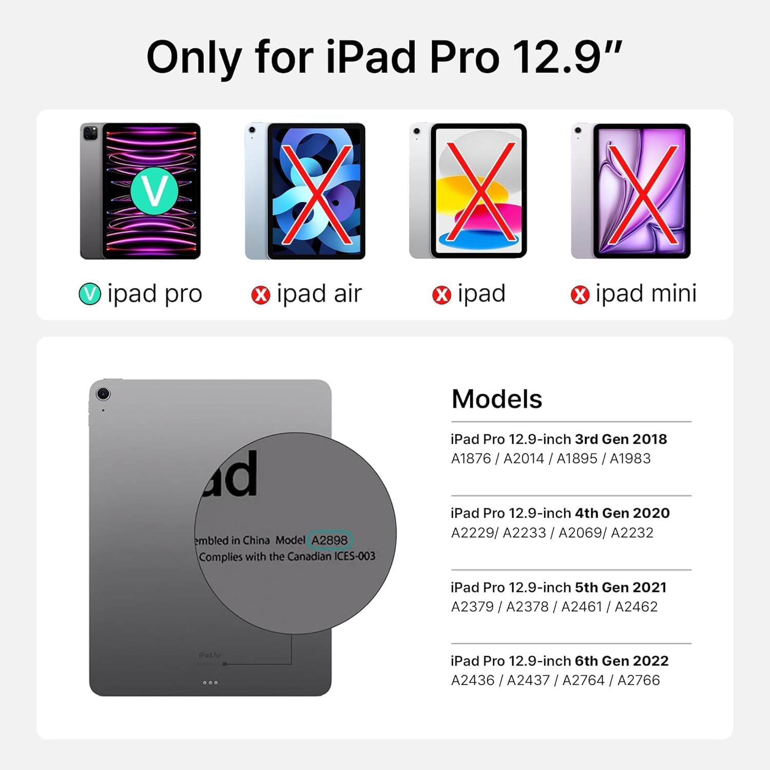 - PERFECTLY DESIGNED FOR iPAD 12.9-INCH: Custom-fit for iPad Pro 12.9" (3rd-6th Gen) and iPad Air 13" (M2), this full-size keyboard case offers a secure magnetic attachment, providing full protection while maintaining an ultra-slim profile. The sturdy folio cover shields your device from scratches and impacts, making it ideal for everyday use and travel.