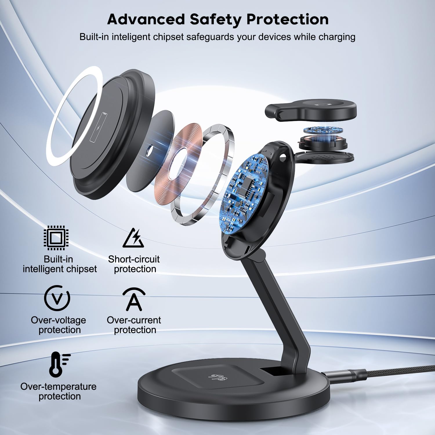 - 【3 in 1 Magnetic Wireless Charger Stand】The magnetic wireless charger with 3-different charging modes options: Portrait Mode, Landscape Mode and Flat Mode. Come with 20W PD 3.0 adapter, 1*USB C to Type C Cable(1m/3.3ft). This magnetic wireless charger can charge for iPhone 17/16/15/14/13/12 from from 0% to 99% in 2-2.5 hours (Based on our lab tests). Intelligent ETL Certified Chip securely protects your phone from overcharging, over-current, over-voltage, overheating, and short circuits