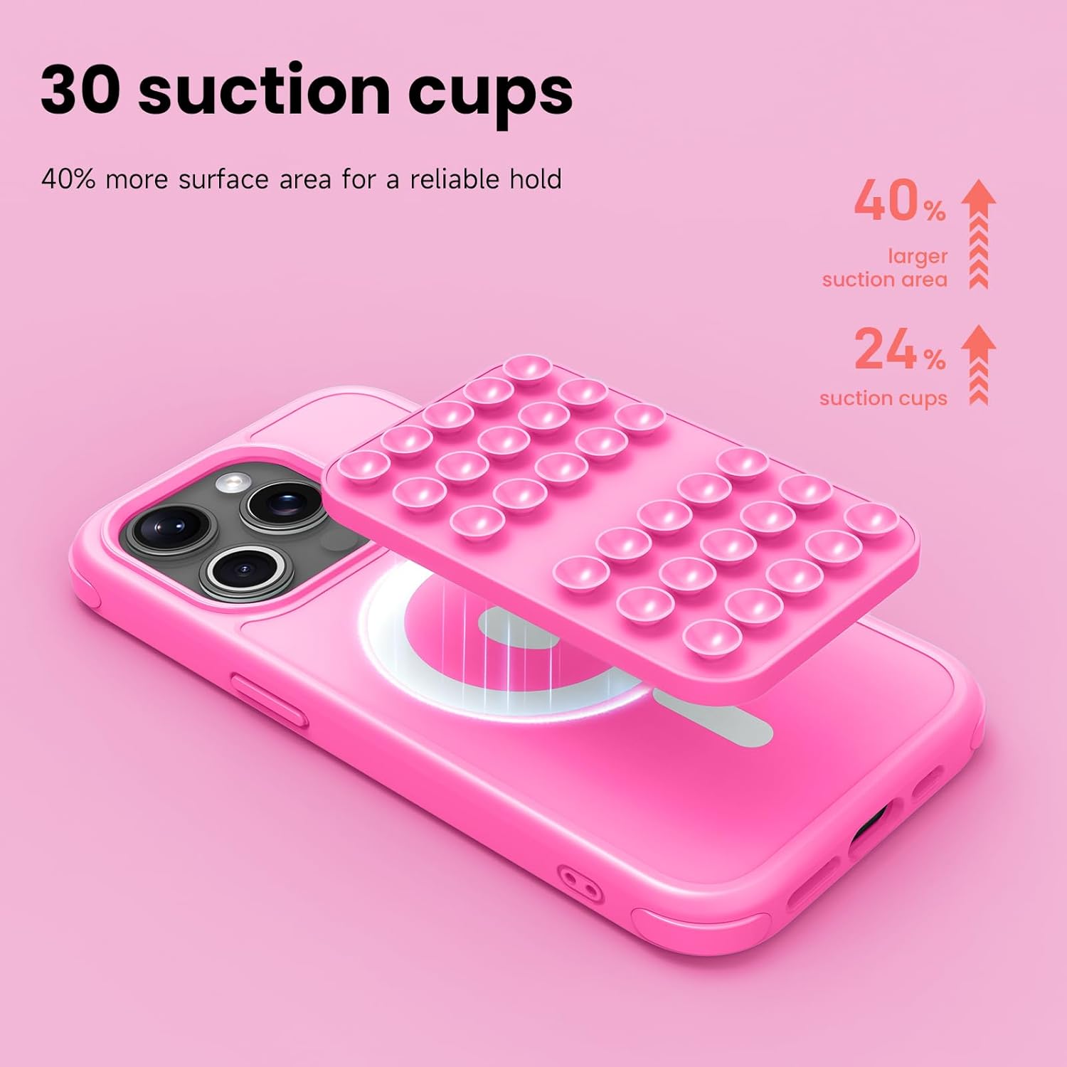 Patented Magnetic Sticky Phone Suction Grip Mount for MagSafe Case,Magnet Silicone Portable Stand Holder for iPhone 16/15/14/13/12 Series and Android, Hands-Free Selfies and Videos,Hot Pink