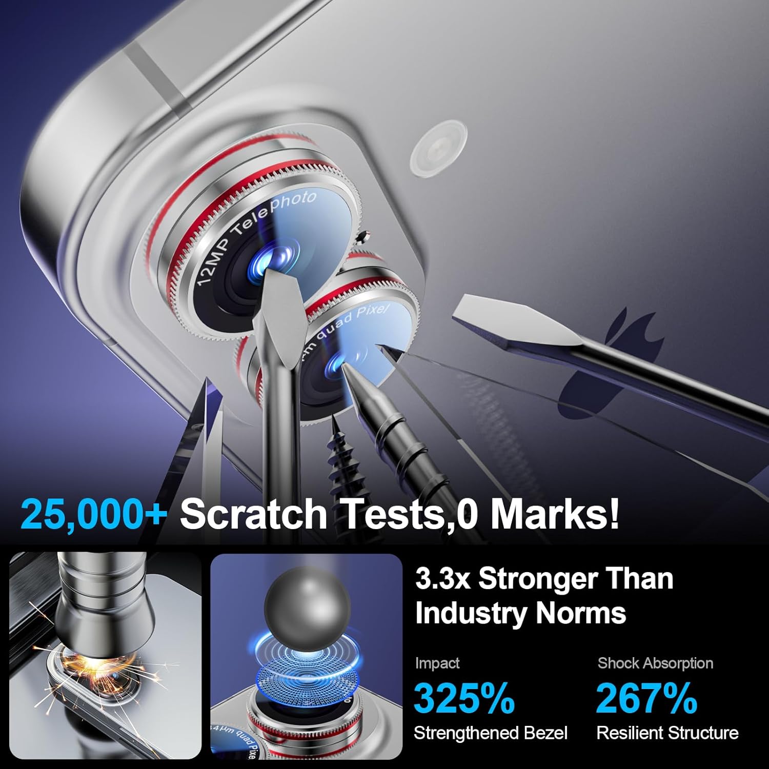 - ✅【Shatterproof Camera Lens Protector for Extreme Adventures】Featuring reinforced titanium alloy edges and a 12KG solid crimping process, this iPhone 16 Plus/iPhone 16 lens protector offers military-grade drop and shock resistance. Its abrasion resistance is 3.3 times stronger than industry standards, making it perfect for hiking, skiing or beach trips. Your iPhone lens stays safe from sand, rocks, and accidental drops