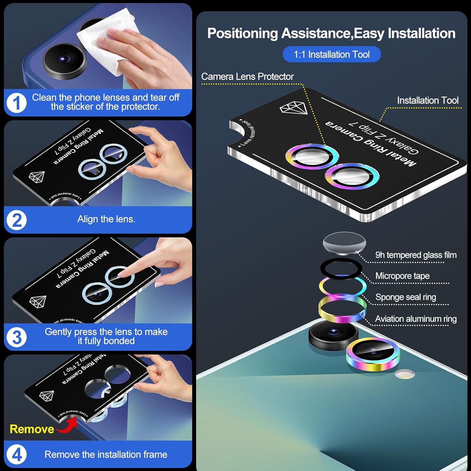 - 【Compatible Model】This ultra-thin camera lens protector only compatible with Samsung Galaxy Z Flip 7. DO NOT FIT other models. Easily fit and match with most phone cases.