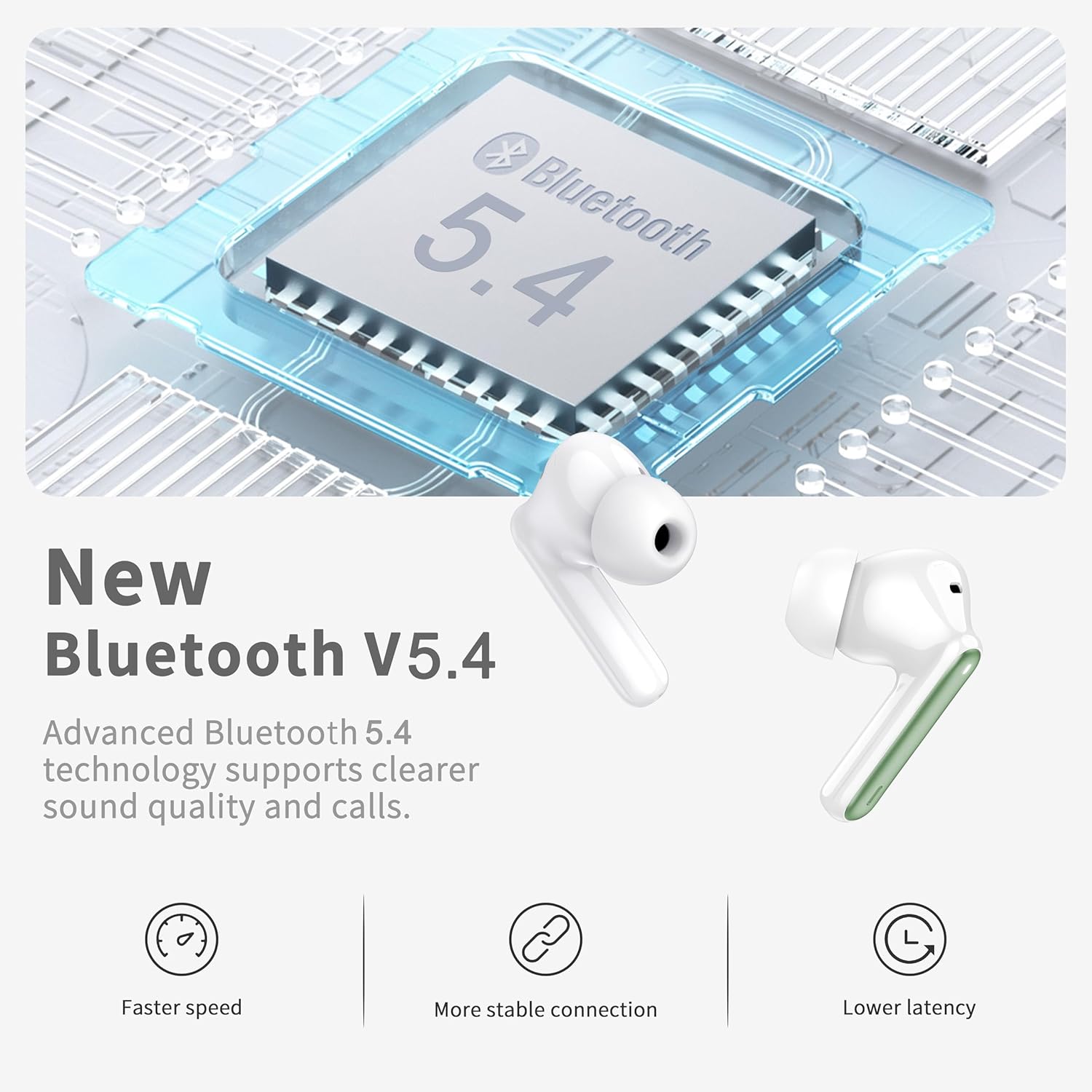 - 2025 Bluetooth 5.4 Technology: A97 Bluetooth wireless earbuds are equipped with Bluetooth 5.4 chips. This makes pairing to devices seamless with reduced latency and increased battery life, enabling and reducing sound latency and providing a more stable connection(15m), faster pairing, and universal compatibility. Experience perfect sound quality during leisure, listening to music, exercising, commuting, or using these running Wireless headphones to answer phone calls.