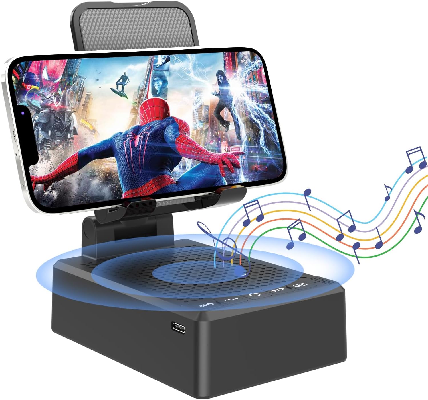 - Widely Compatible:Wireless bluetooth speaker with phone holder is suitable for most 4-13 inch smartphones,tablets and e-readers with bluetooth function,such as iPhone 16 /15/14/14 Pro/14 Plus/14 Pro Max/iPhone 13 / 13 Pro/iPhone 12/ 12 Pro/ 11/ Xs Max/ Xs/ XR/ X/ 8/7/SE , Galaxy S23 Ultra S9 /S9 Plus/S8 / S7 / S6 / Note9/Note 8, LG, IPAD mini, Samsung Tab, Google Nexus, Kindle and so on. The induction speaker uses a 5.3 bluetooth chip,offering fast connection speeds,simple operation,and no delay,making it easily compatible with all bluetooth devices at hand