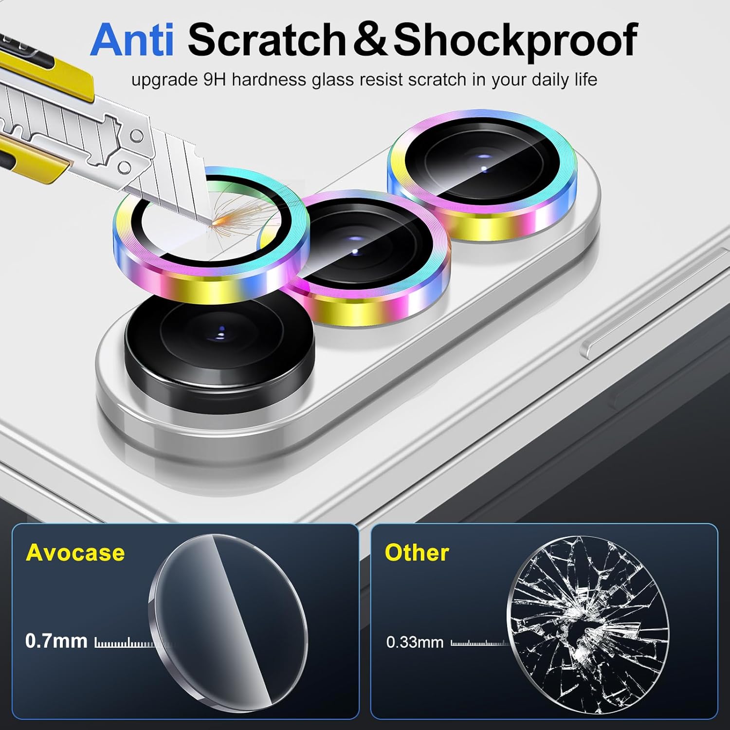 - 【9H Ultra Protection】Made of 9H hardness coated tempered glass and aviation aluminum alloy. This camera protector is sturdy and not bulky, can prevent the camera from scratches, scuffs and bumps. Lightweight, Dustproof, Waterproof, Oleophobic and will not affect the use of the phone case.