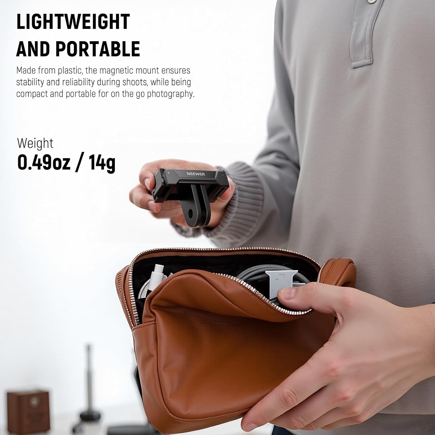 - 【Robust & Compact】 Made from plastic, the magnetic mount ensures stability and reliability during shoots, while being compact and portable for on the go photography. Ideal for content creator essential photography accessories and influencer must have action camera gear
