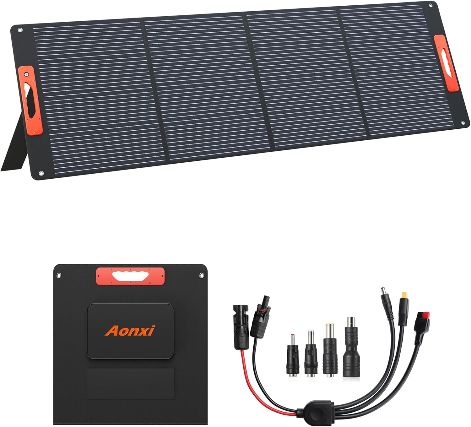 - Portability: Take the power of the sun with you!!! This camping solar panel features a lightweight(18.96 pounds), foldable design(folded size: 26*21.5*1.97 inches) for easy transportation and storage, making it perfect for outdoor activities and off-grid adventures - including camping, hiking, road trip, RVing, etc.