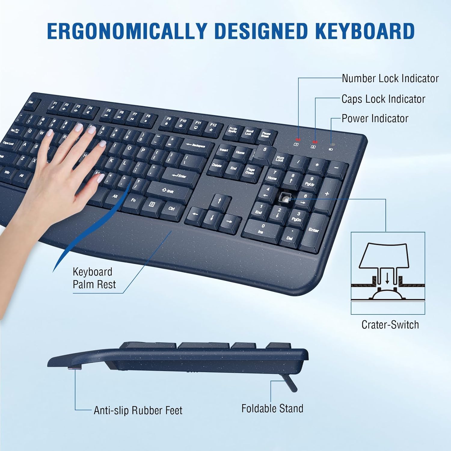 Wireless Keyboard and Mouse Combo, EDJO 2.4G Full-Sized Ergonomic Computer Keyboard with Wrist Rest and 3 Level DPI Adjustable Wireless Mouse for Windows, Mac OS Desktop/Laptop/PC(Galaxy Blue)
