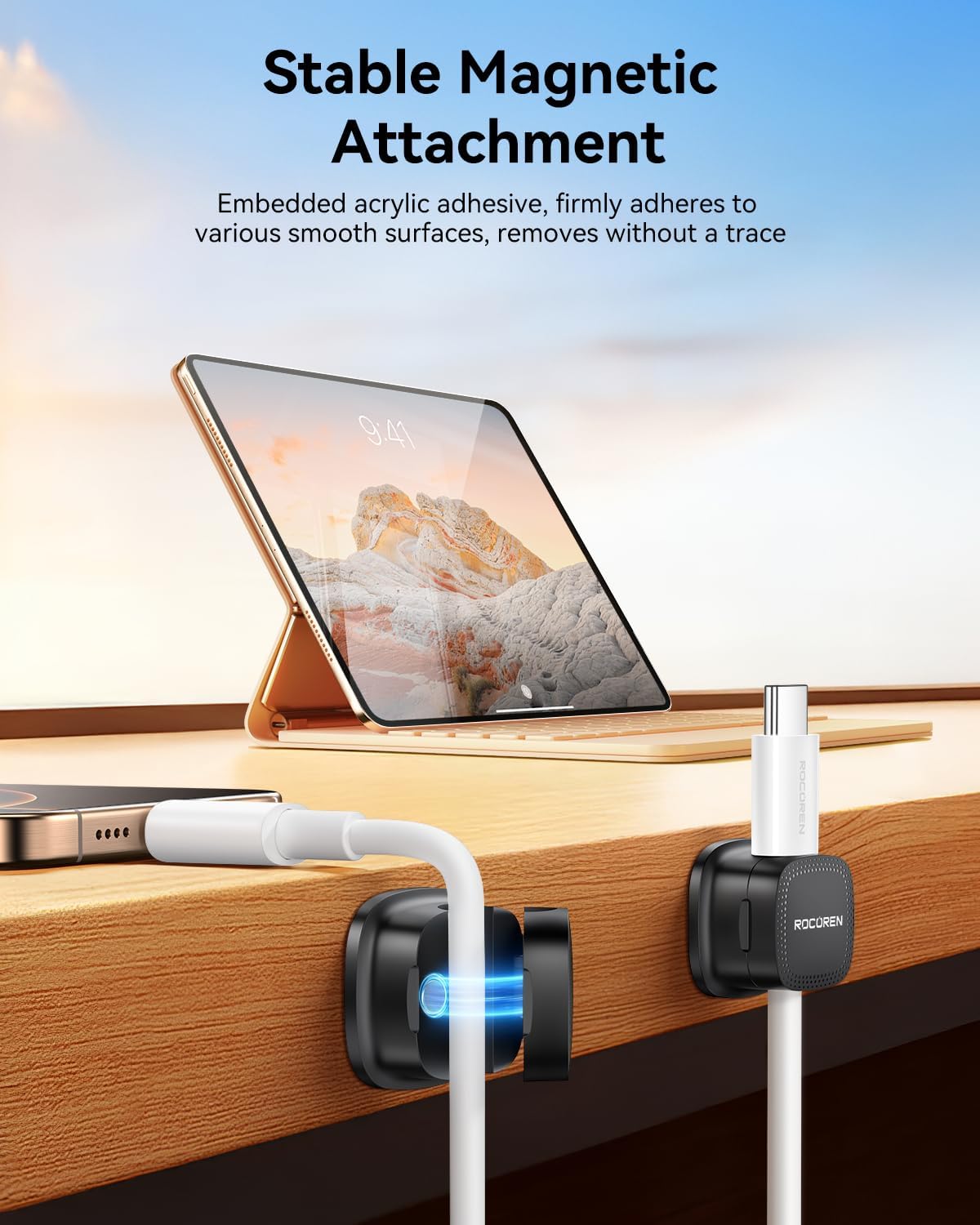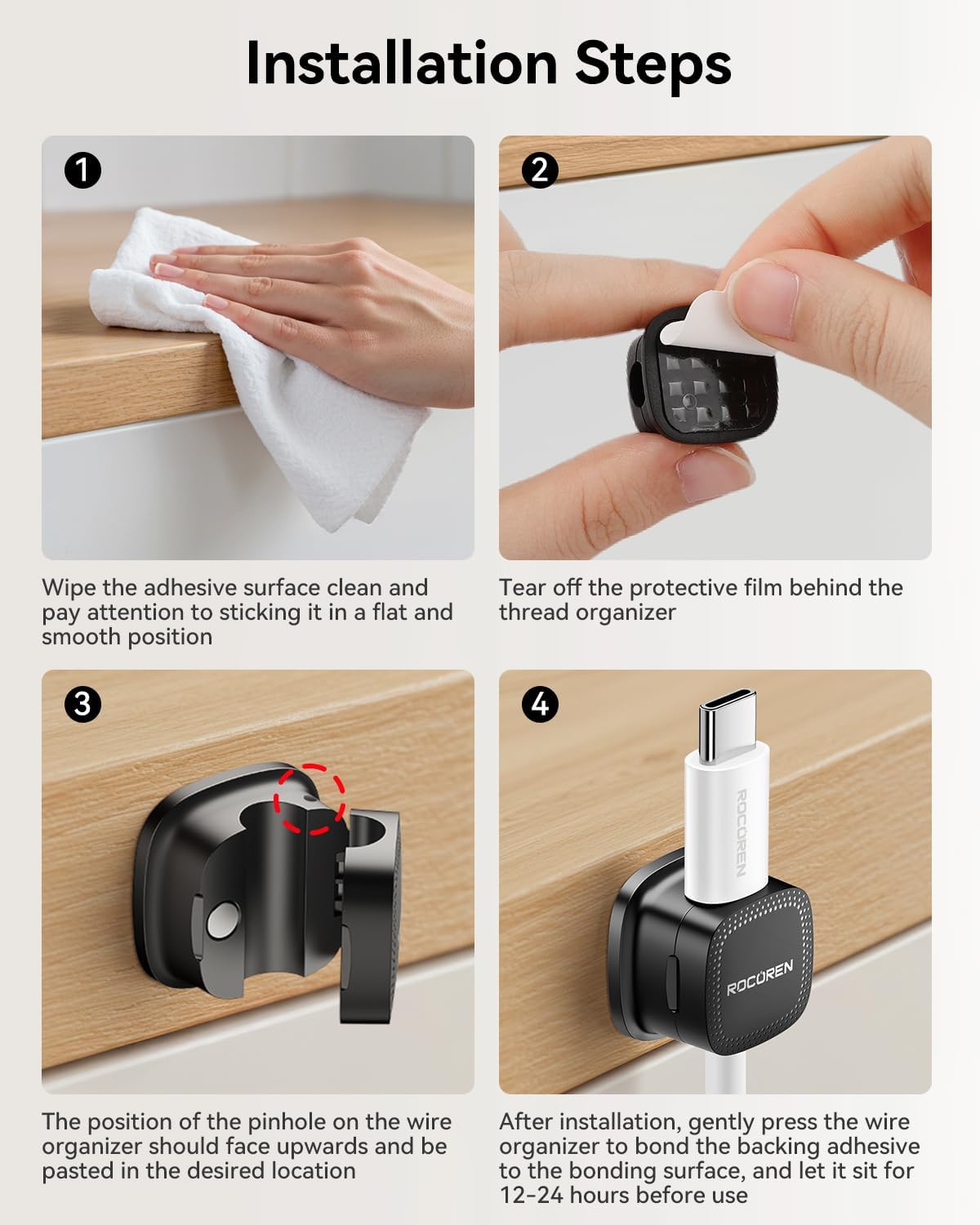- High-Strength ABS Material:Rocoren magnetic cable management Passed 2000 gravity cycle tests (Lab-Tested Durability), the durability of the rubber material is 200% improved, and it is impact-resistant and corrosion-resistant. Installation tips: Please use alcohol cotton to clean the surface before use, press for 30 seconds to activate the glue, and let it stand for 12-24 hours to achieve the best viscosity (Maximum Adhesion).