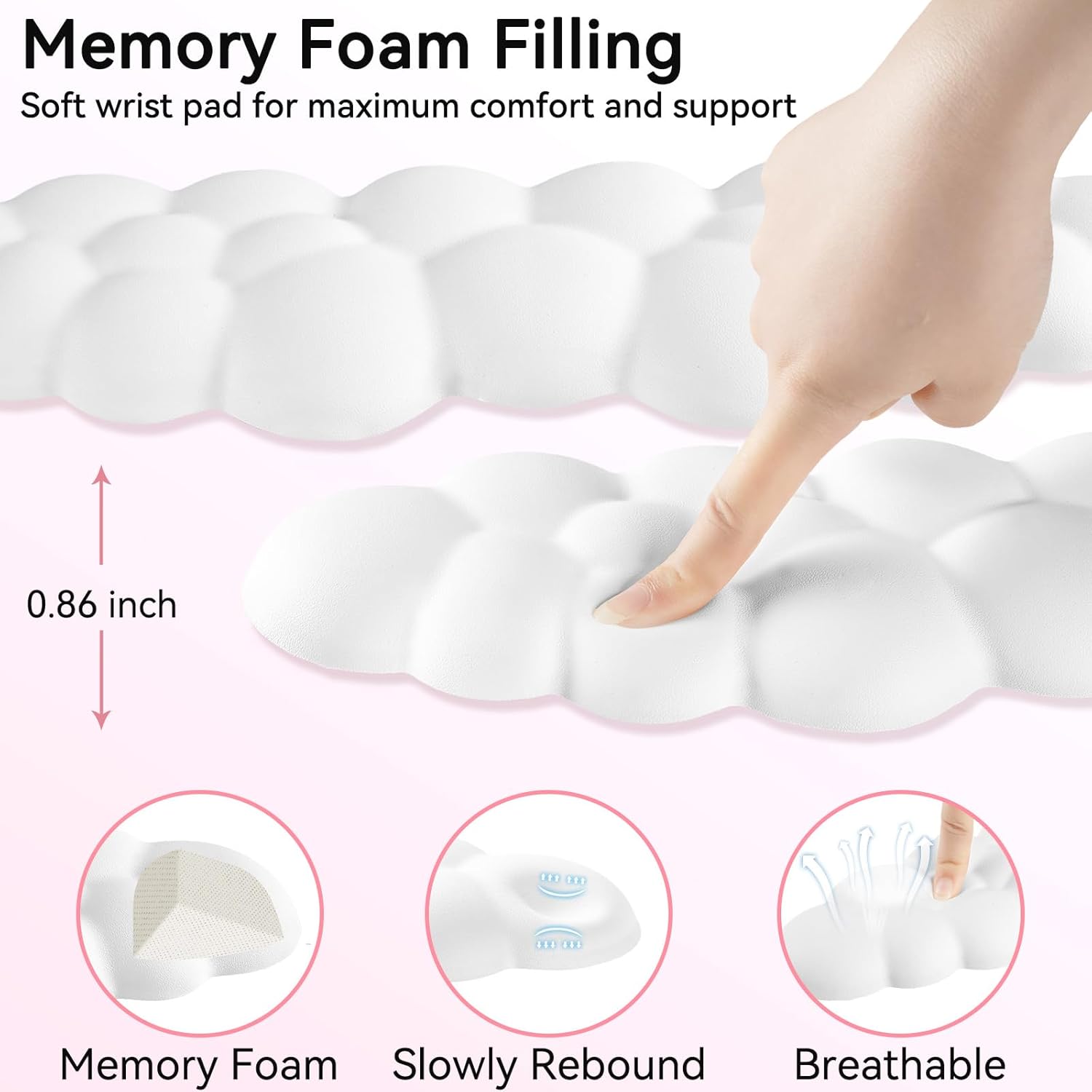 Cloud Wrist Rest for Computer Keyboard, 4-in-1 Memory Foam Leather Cloud Keyboard Wrist Rest and Mouse Pad Set with Ergonomic Support for Arm and Palm Cushion, Gaming/Work Setup, White
