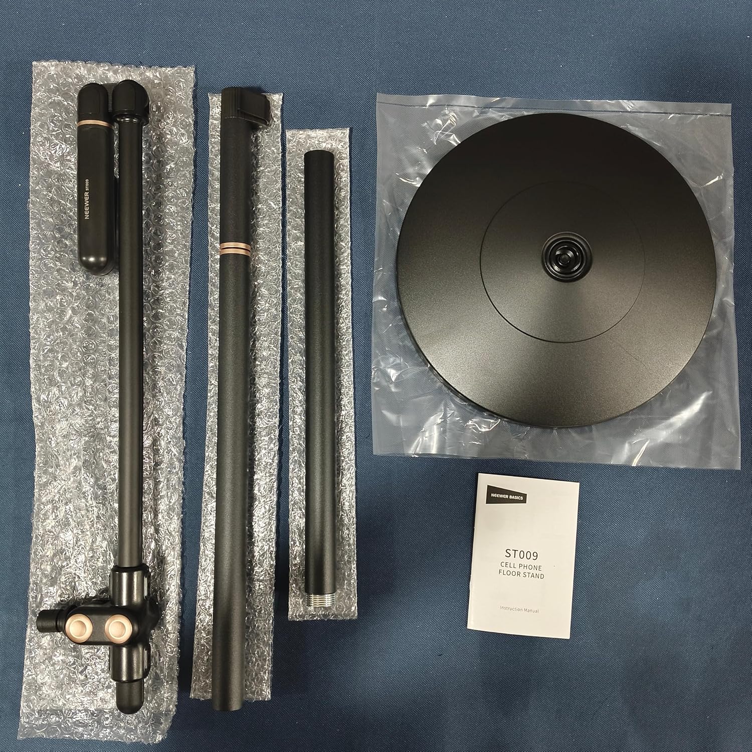 NEEWER BASICS Phone Floor Stand with Horizontal Extension Arm, Adjustable Bed Phone Holder Clamp Mount Compatible with iPhone 16 15 Pro Max Plus Samsung for Video Recording, Weighted Metal Base, ST009
