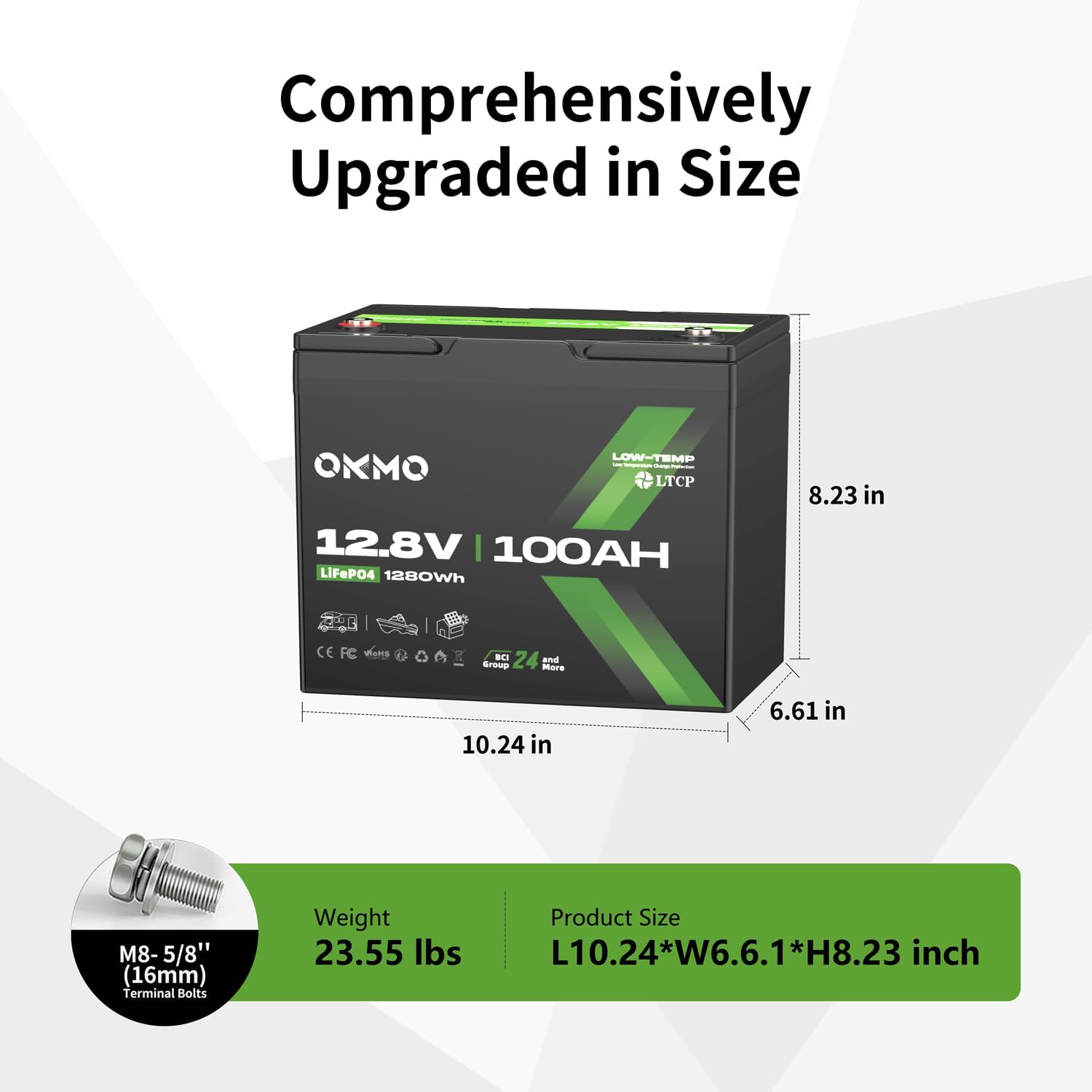 12V 100Ah LiFePO4 Battery, BCI Group 24, Built-in 100A BMS, 1280Wh Rechargeable Deep Cycle Lithium Battery, 15000+ Cycles, Low Temp Protection, for RV, Marine, Solar, Trolling Motor, Home, Off-Grid