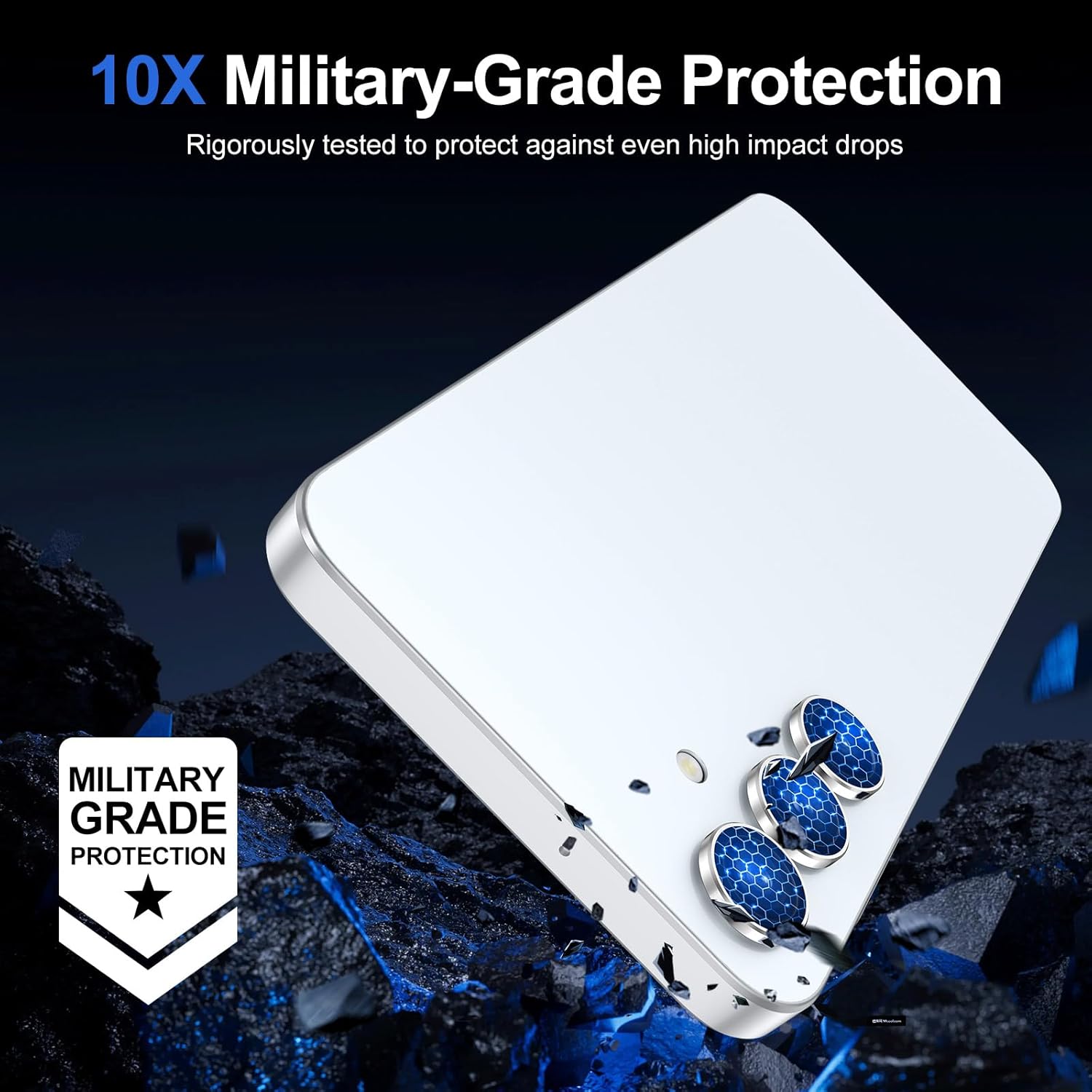 - 【9H Ultra Protection】Made of 9H hardness coated tempered glass and aviation aluminum alloy. This camera protector is sturdy and not bulky, can prevent the camera from scratches, scuffs and bumps. Lightweight, Dustproof, Waterproof, Oleophobic and will not affect the use of the phone case.