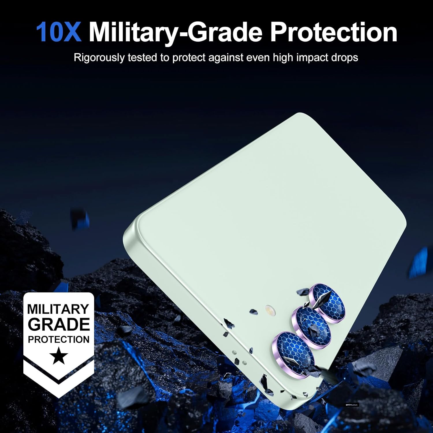 - 【9H Ultra Protection】Made of 9H hardness coated tempered glass and aviation aluminum alloy. This camera protector is sturdy and not bulky, can prevent the camera from scratches, scuffs and bumps. Lightweight, Dustproof, Waterproof, Oleophobic and will not affect the use of the phone case.