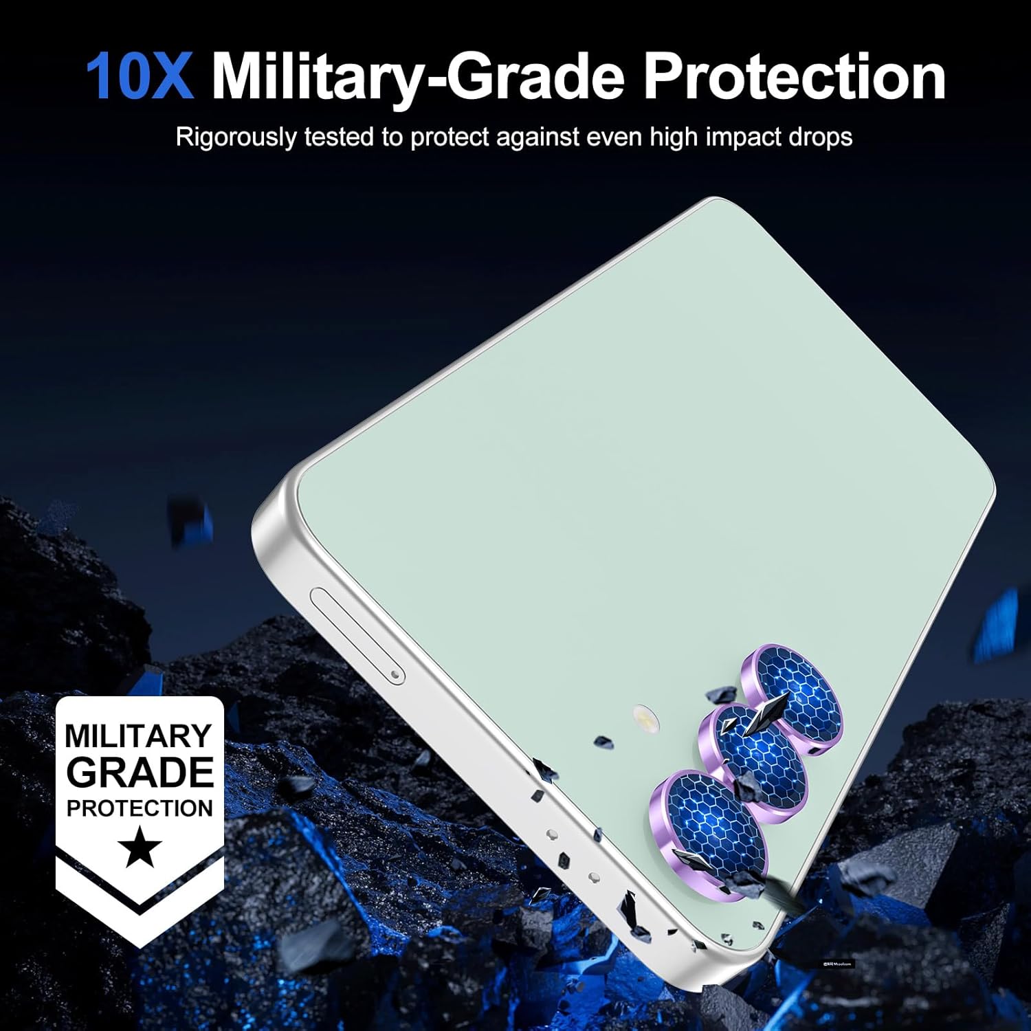- 【9H Ultra Protection】Made of 9H hardness coated tempered glass and aviation aluminum alloy. This camera protector is sturdy and not bulky, can prevent the camera from scratches, scuffs and bumps. Lightweight, Dustproof, Waterproof, Oleophobic and will not affect the use of the phone case.