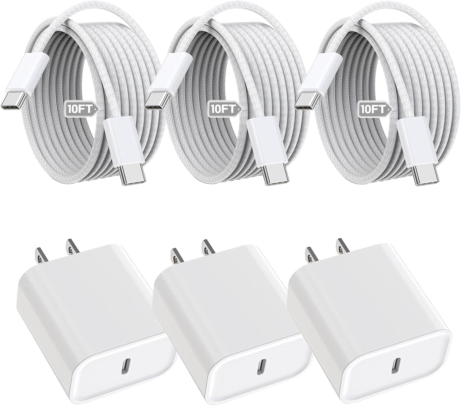 iPhone 16 15 Charger Fast Charging,3Pack 20W Fast Charging USB C Charger with 10Foot Long Type C to C Cable Cord TypeC Block Brick for iPhone 16e/16/16 Pro/16 Plus/16 Pro Max/15 Pro,iPad Air/Pro/Mini