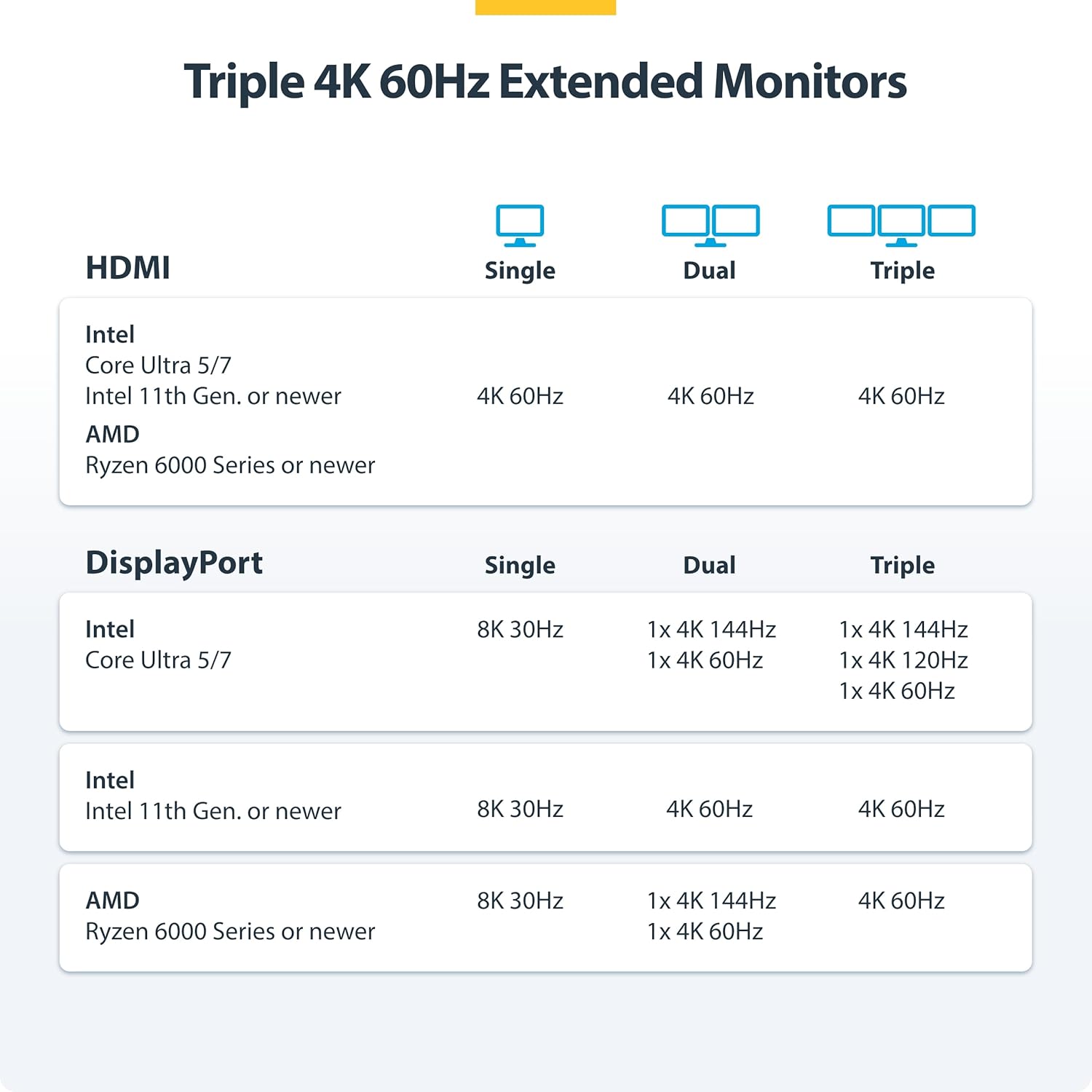 - TRIPLE 4K60 OVER USB4 : Connect up to three 4K 60Hz displays through a single USB4 or Thunderbolt 4 port with uncompressed video powered by your laptop's native GPU; Drive demanding workflows with high-performance visuals and no software compression
