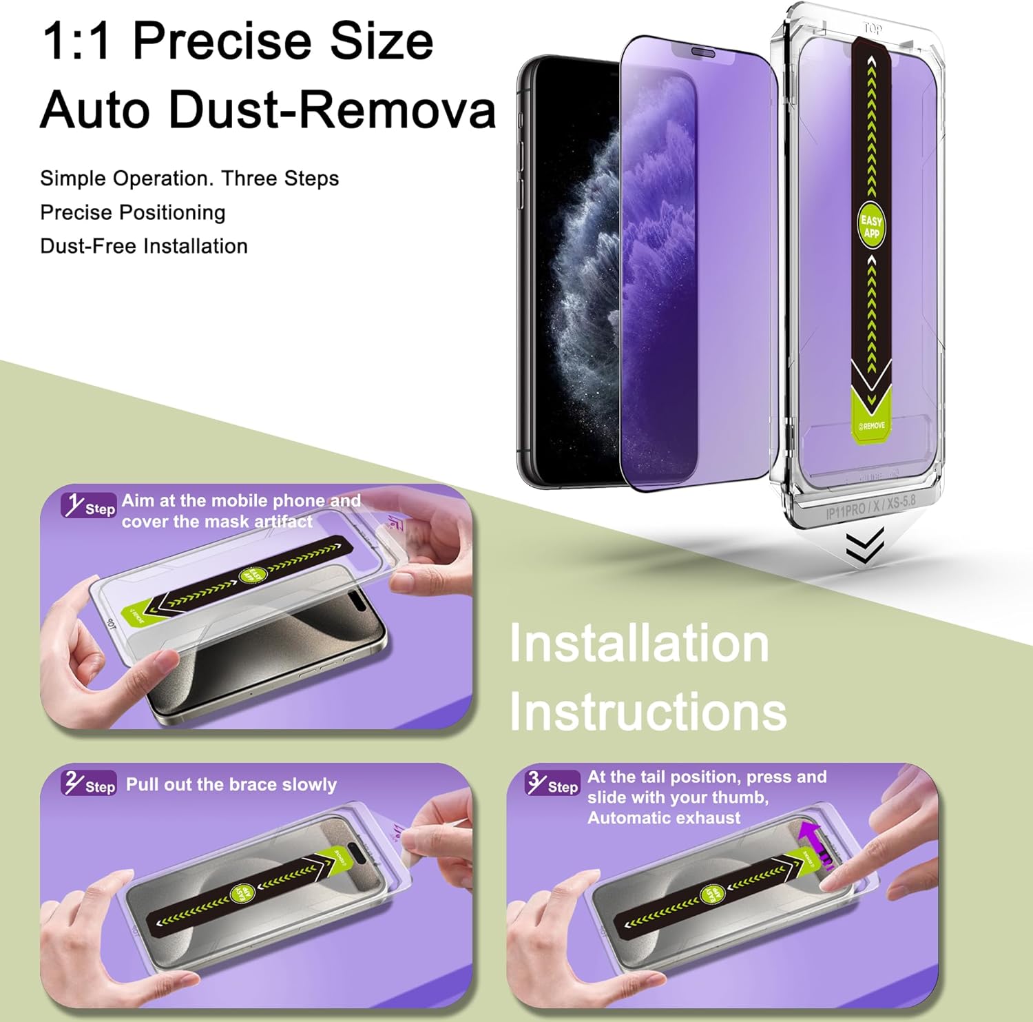- Auto Dust Removal & Easy Installation: The SY SHANGYAN Anti Blue Light Matte Screen Protector for iPhone X/XS/11 Pro features advanced auto dust removal and self-aligning technology for a flawless,bubble-free install every time.Just place the frame,pull the tab,and press to push out any air bubbles.Installation is quick,easy,and hassle-free.For best results,watch our step-by-step installation video before applying