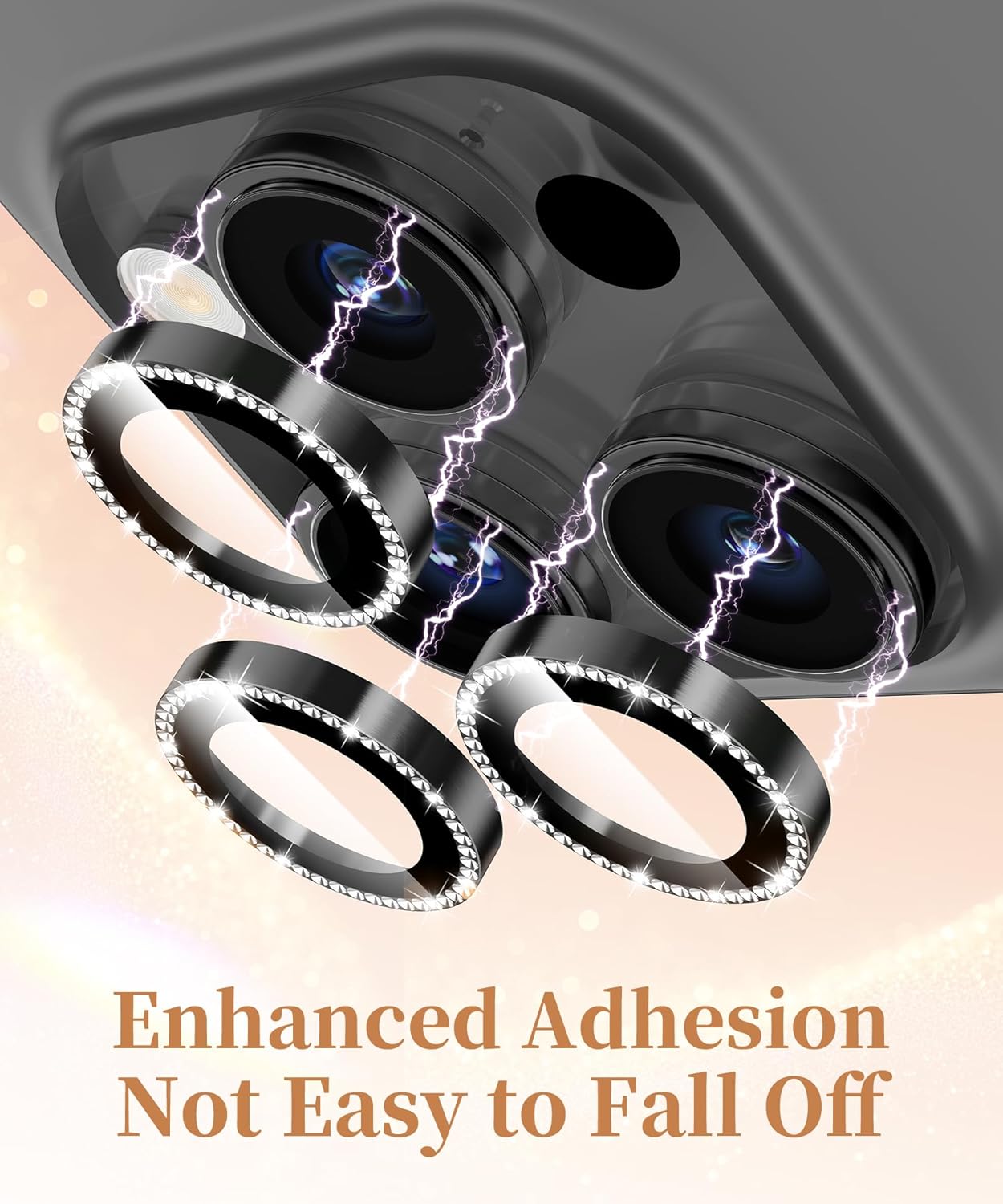 - Bling Design Camera Lens Protector: Only compatible with iPhone 16 Pro 6.3" and 16 Pro Max 6.9" (2024 release); The package Includes an installation tray containing 3 separate lens protectors, a set of cleaning kit and an user manual; Engraved dot detailing creates a refined sparkle effect without real rhinestones ; Combines elegant design with reliable lens protection