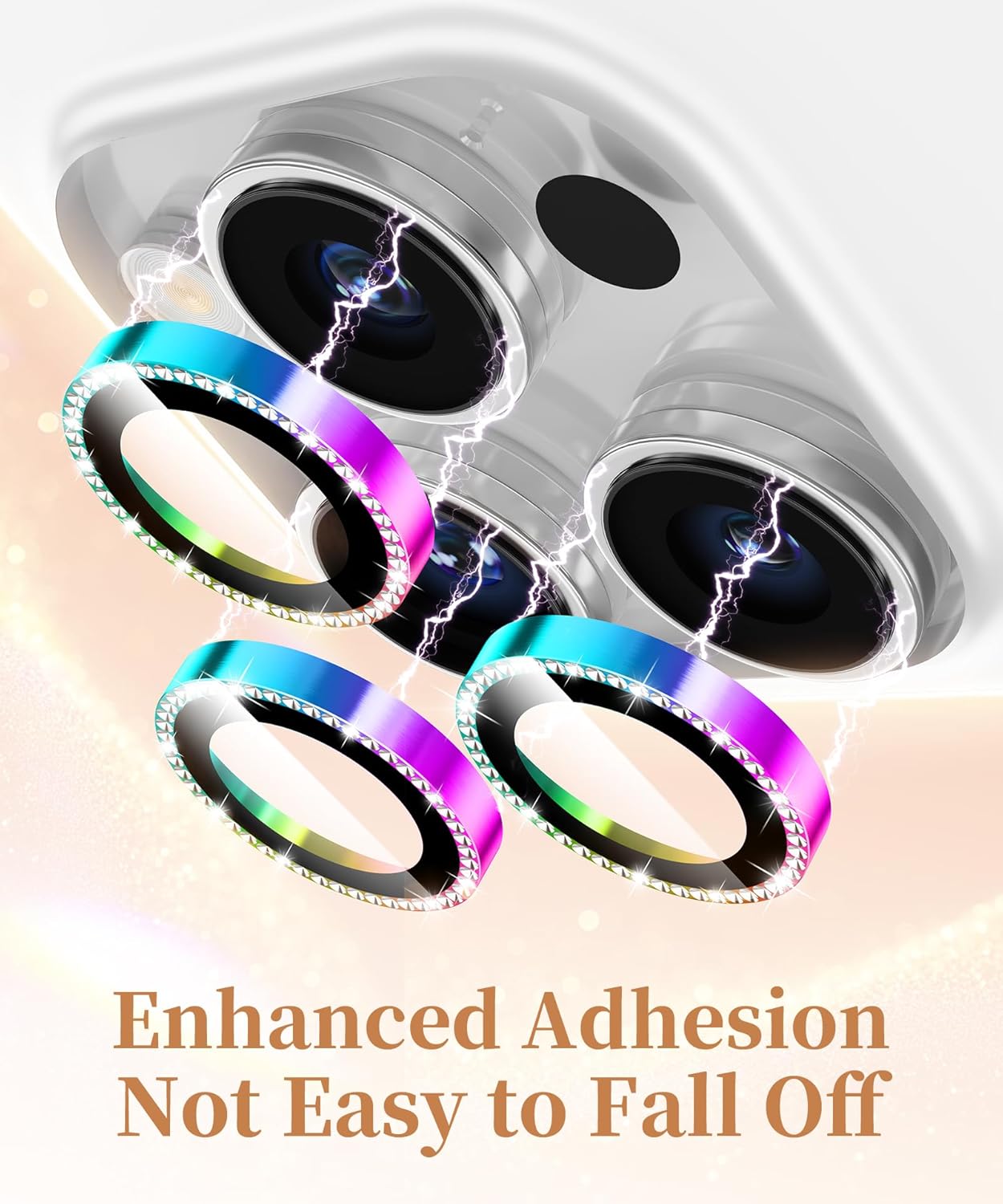 - Bling Design Camera Lens Protector: Only compatible with iPhone 16 Pro 6.3" and 16 Pro Max 6.9" (2024 release); The package Includes an installation tray containing 3 separate lens protectors, a set of cleaning kit and an user manual; Engraved dot detailing creates a refined sparkle effect without real rhinestones ; Combines elegant design with reliable lens protection