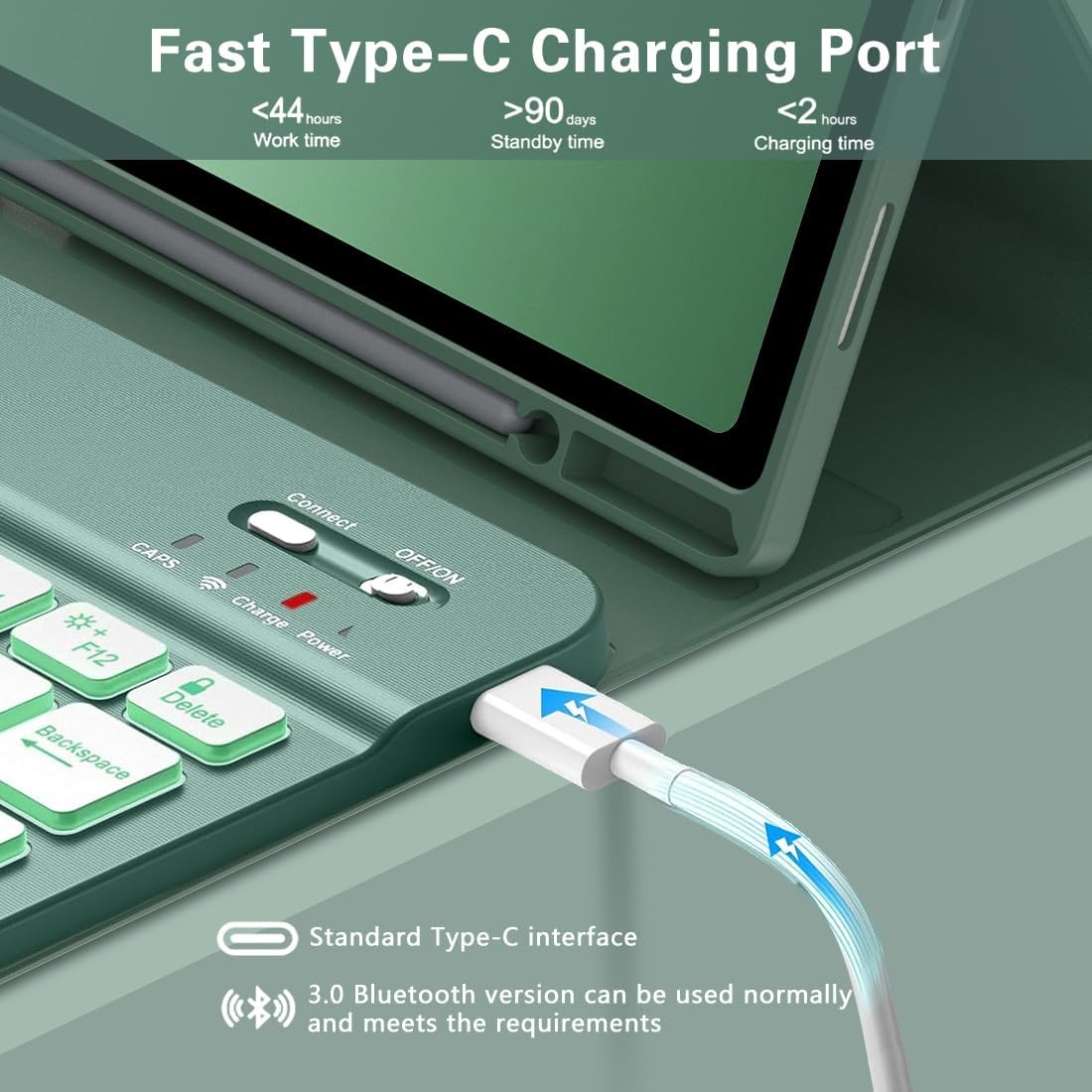 Galaxy Tab A9 Plus Case with Keyboard 5G 11 Inch 2023 (SM-X210/X216/X218), 7 Color Backlit Detachable Tablet Keyboard Cover with S Pen Holder for Samsung Galaxy Tab A9+ 11" (Dark Green)