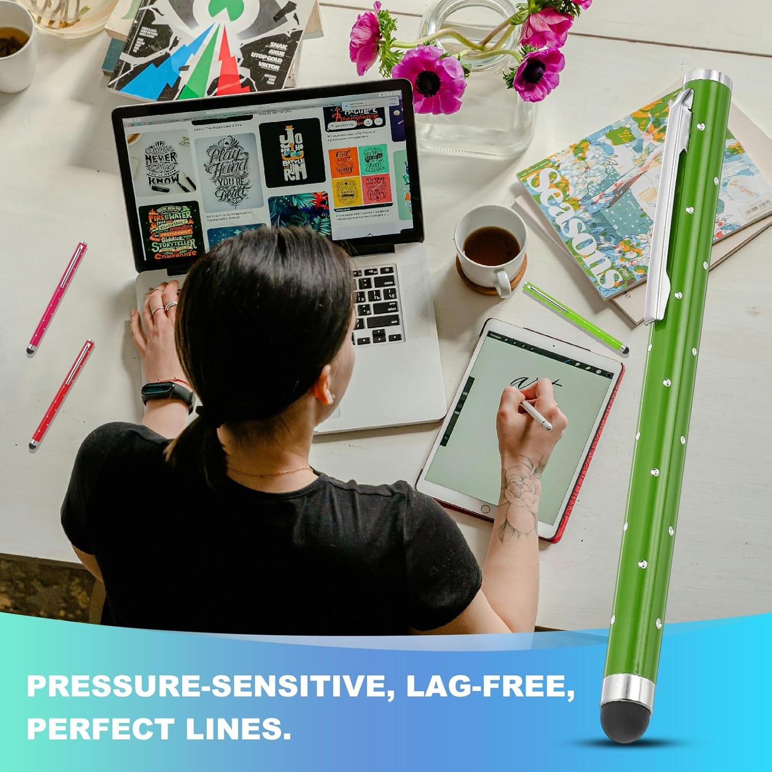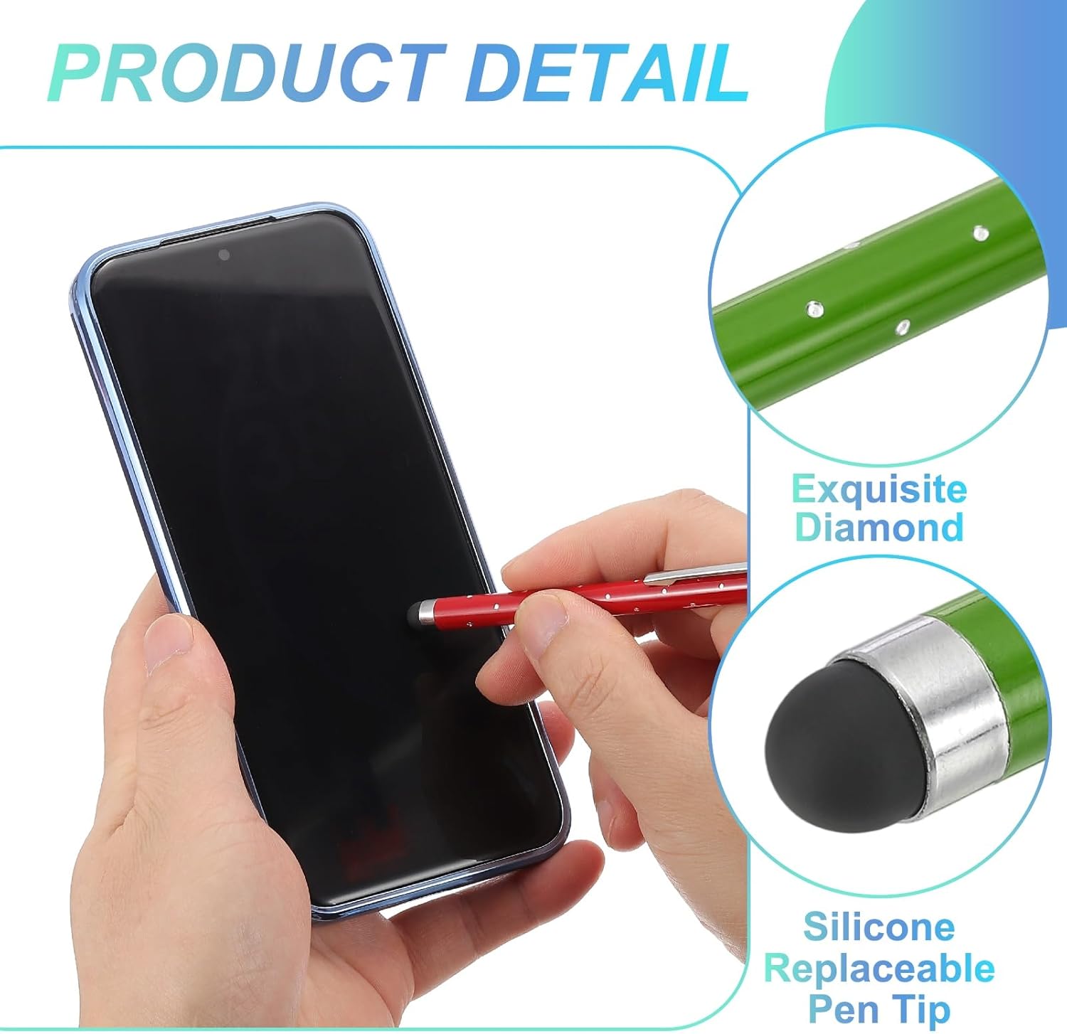 - Application: These shimmering crystal universal metal capacitive pens feature ultra-sensitive rubber tips made of soft silicone, ensuring gentle contact with screens to prevent scratches. Suitable for smooth writing, sketching, detailed drawing, precision work, coloring, note-taking, gaming, studying, and office tasks.