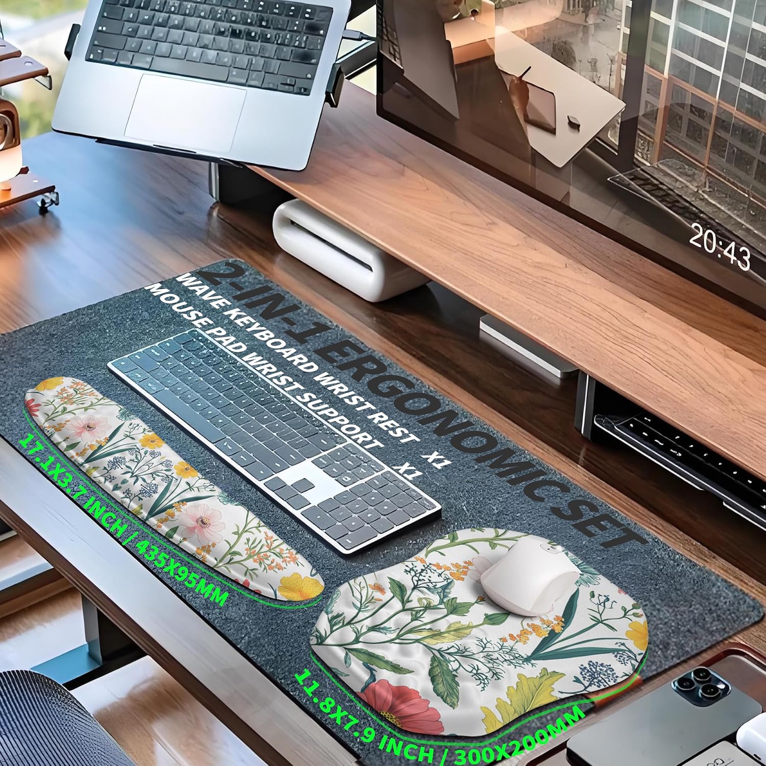 - 【Ergonomic Set】Wave Keyboard Wrist Rest x1(17.1x3.7 inch, 435x95mm) and Massage Slope Mouse Pad Wrist Support x1(11.8x7.9 inch, 300x200mm), ergonomic curvature design optimization, more in line with the natural position of the shoulder during work, alleviates carpal tunnel syndrome and wrist pain