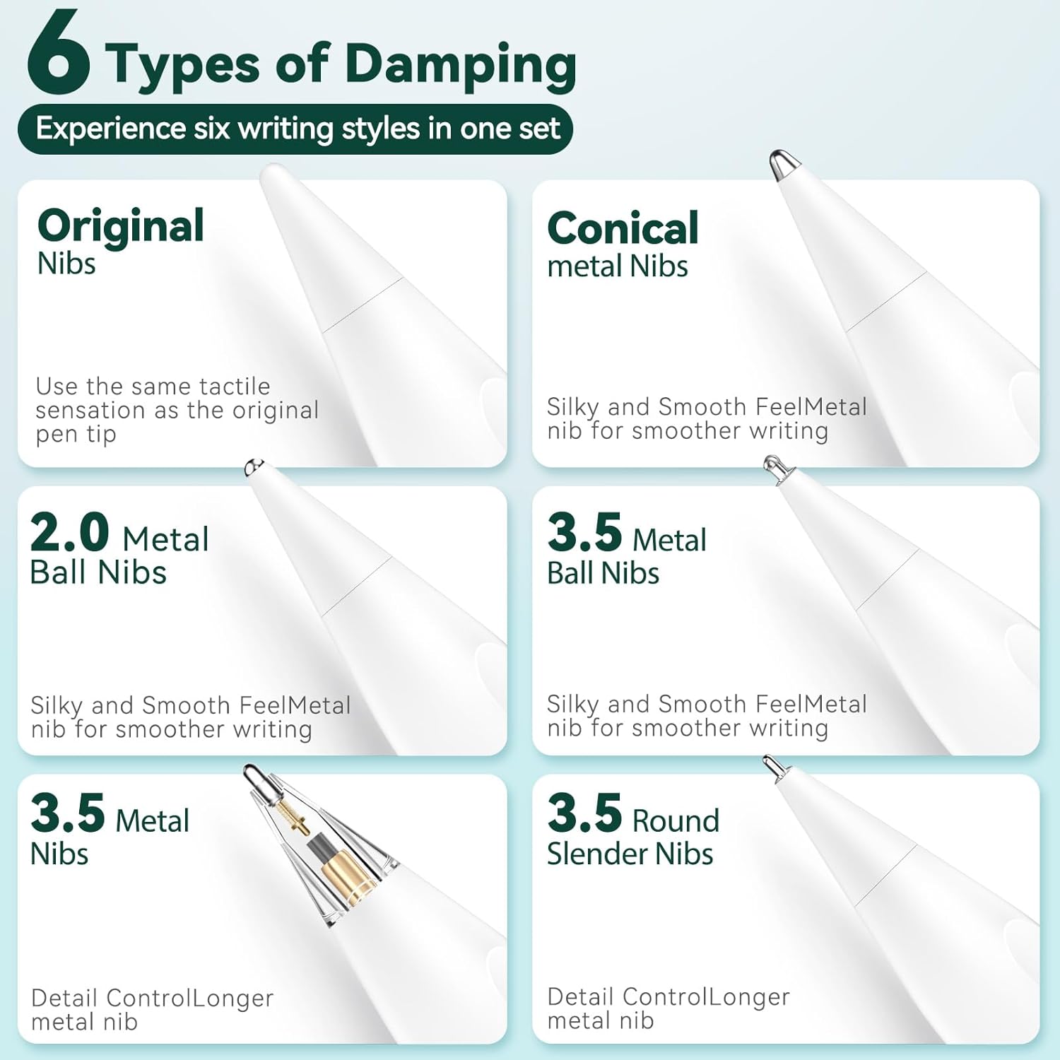 - 【Multiple types of pen tips】Original model: 100% restores the official touch, the first choice of designers. Short metal head: 5mm ultra-low damping, a great tool for shorthand meetings. Medium-long metal head: 3° tilt sensing optimization, dedicated for painting and sketching. Slender metal head: a golden partner of paper film, with a sandy texture when writing.