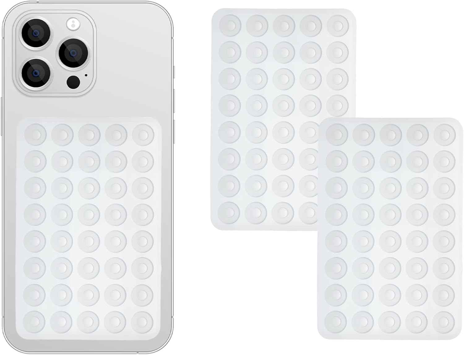 2 Pack Silicone Double-Sided Suction Grip – 40 Cups per Side, Strong Hold for iPhone, Galaxy, Pixel, Android – Hands-Free for Selfies & Videos (Clear)