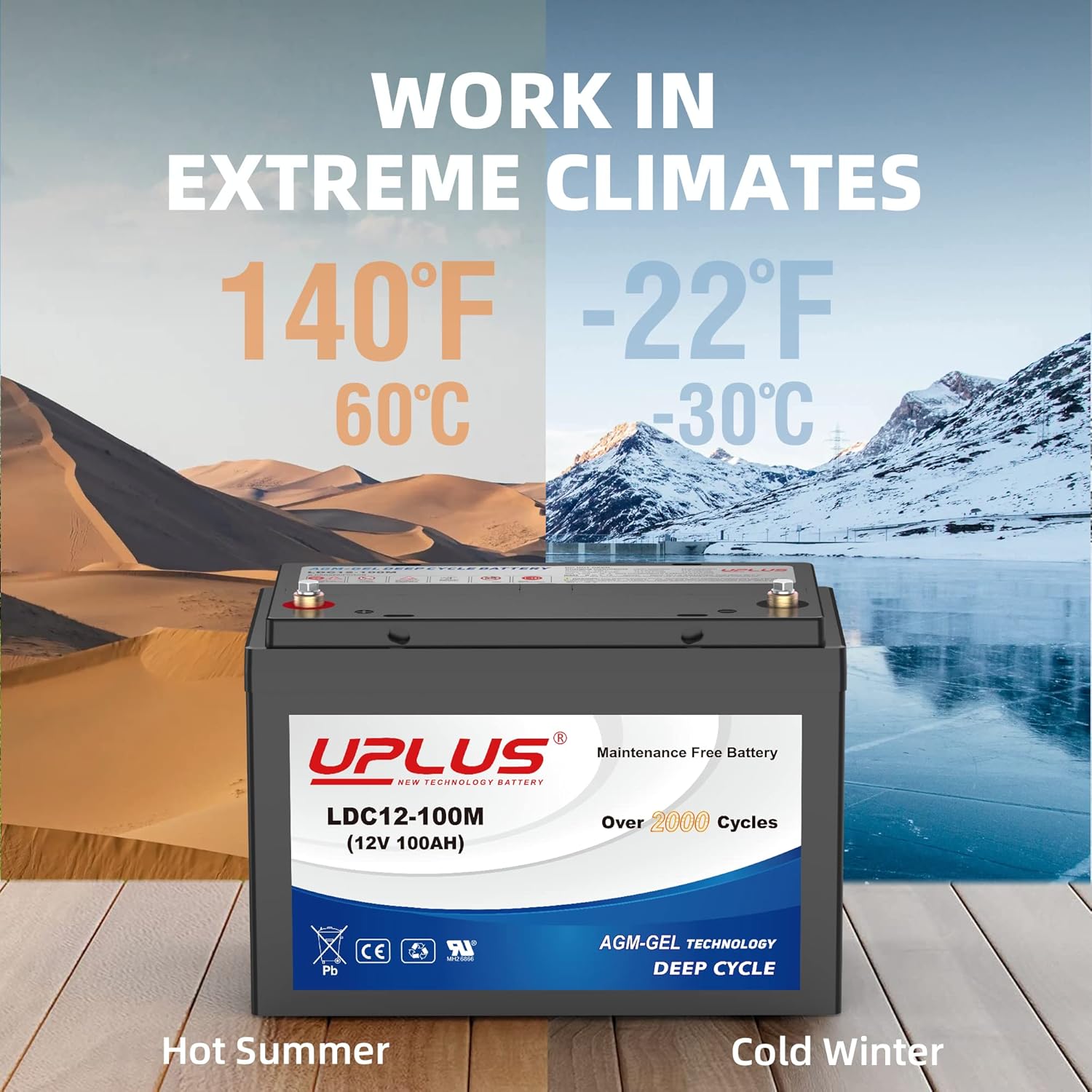 UPLUS 12V 100Ah Deep Cycle Battery, LDC12-100M Maintenance Free BCI Group 27 Size Rechargeable AGM Gel Batteries for Solar, RV, Golf Cart, Mobility, Camping, Backup, Trolling Motor