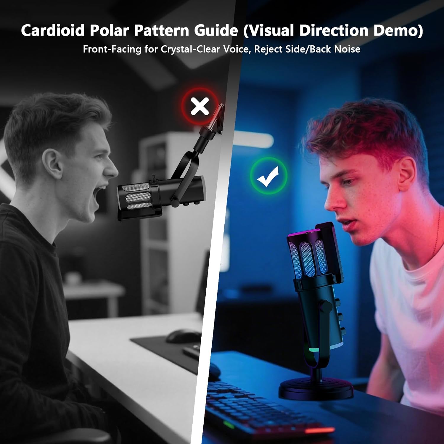 - Pure Vocals and Noise Reduction: The gaming microphone with 96kHz sampling rate and the built-in noise-canceling chipset delivers naturally detailed audio and reducing background noise interference.It features a cardioid polar pattern, greater than 85dB SNR offer dual support for pure voice.Whether you're streaming, gaming, or recording, it delivers unparalleled voice clarity, ensuring your teammates and viewers can hear every word