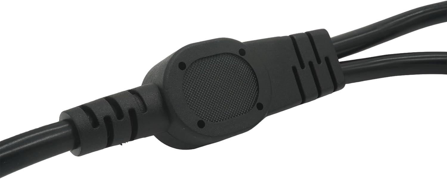 - High Quality 3 Prong Power Splitter Cord, the main cable and splitter cables are made of SJT 16 AWG. Connectors: NEMA 5-15P to NEMA 5-15R x 2, cable length: 1.4FT