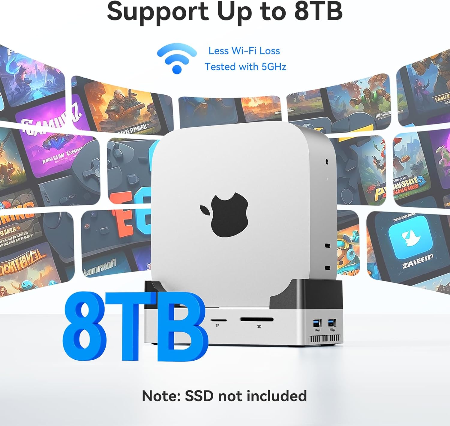 - WI-FI SIGNAL-FRIENDLY VERTICAL DESIGN: This space-saving vertical docking station lifts Mini M4 antennas clear of metal for a stronger 5 GHz Wi-Fi signal, while anti-slip feet and a side USB-C host cable keep your setup neat and rock-steady