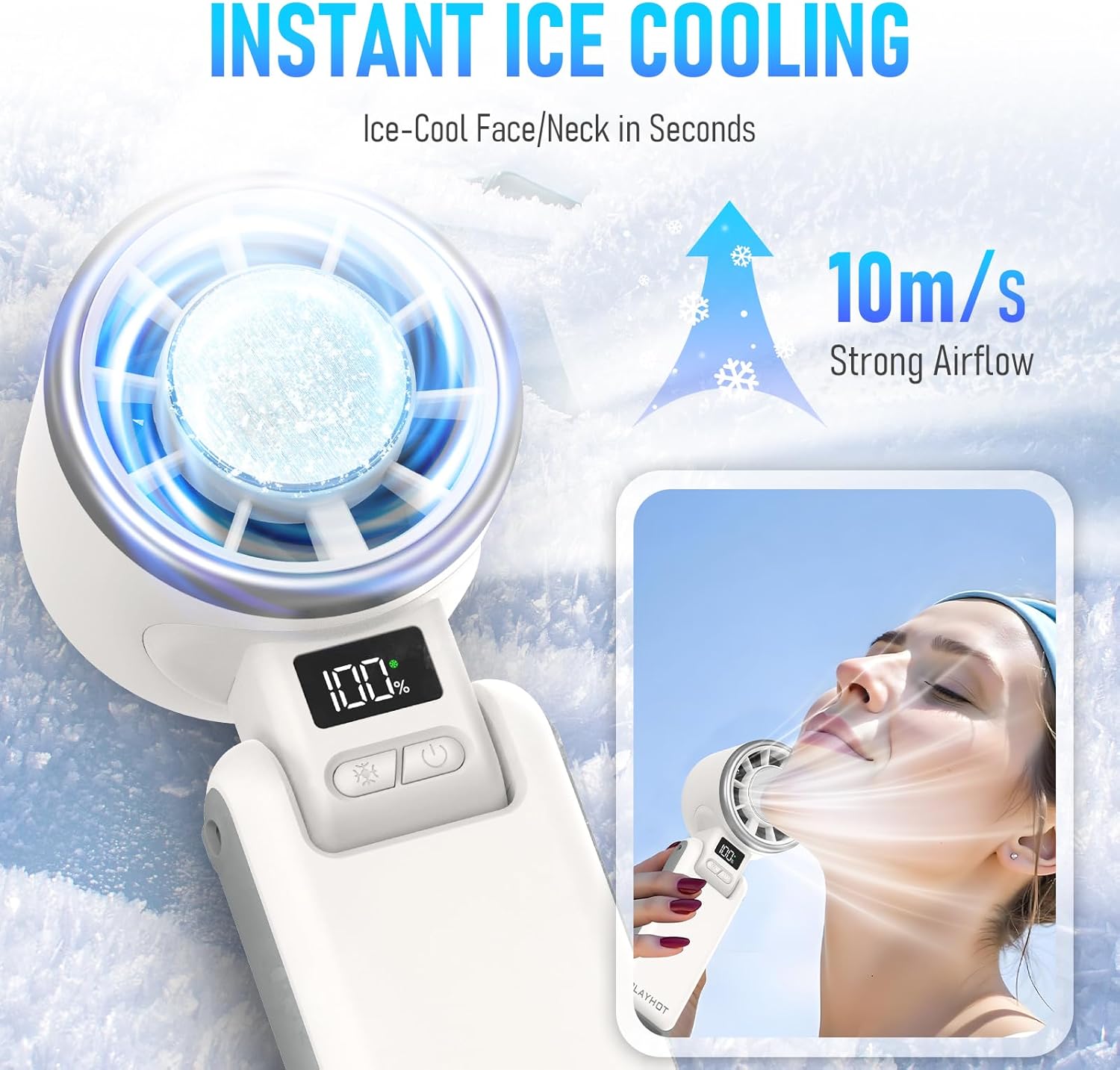 Portable Handheld Turbo Fan with Ice Cooling, Rechargeable Personal Fan, Up tp 12Hrs Cooling, 5 Speed 25550RPM Powerful Portable Fan for Travel, Outdoor, Camping, Hiking (White)