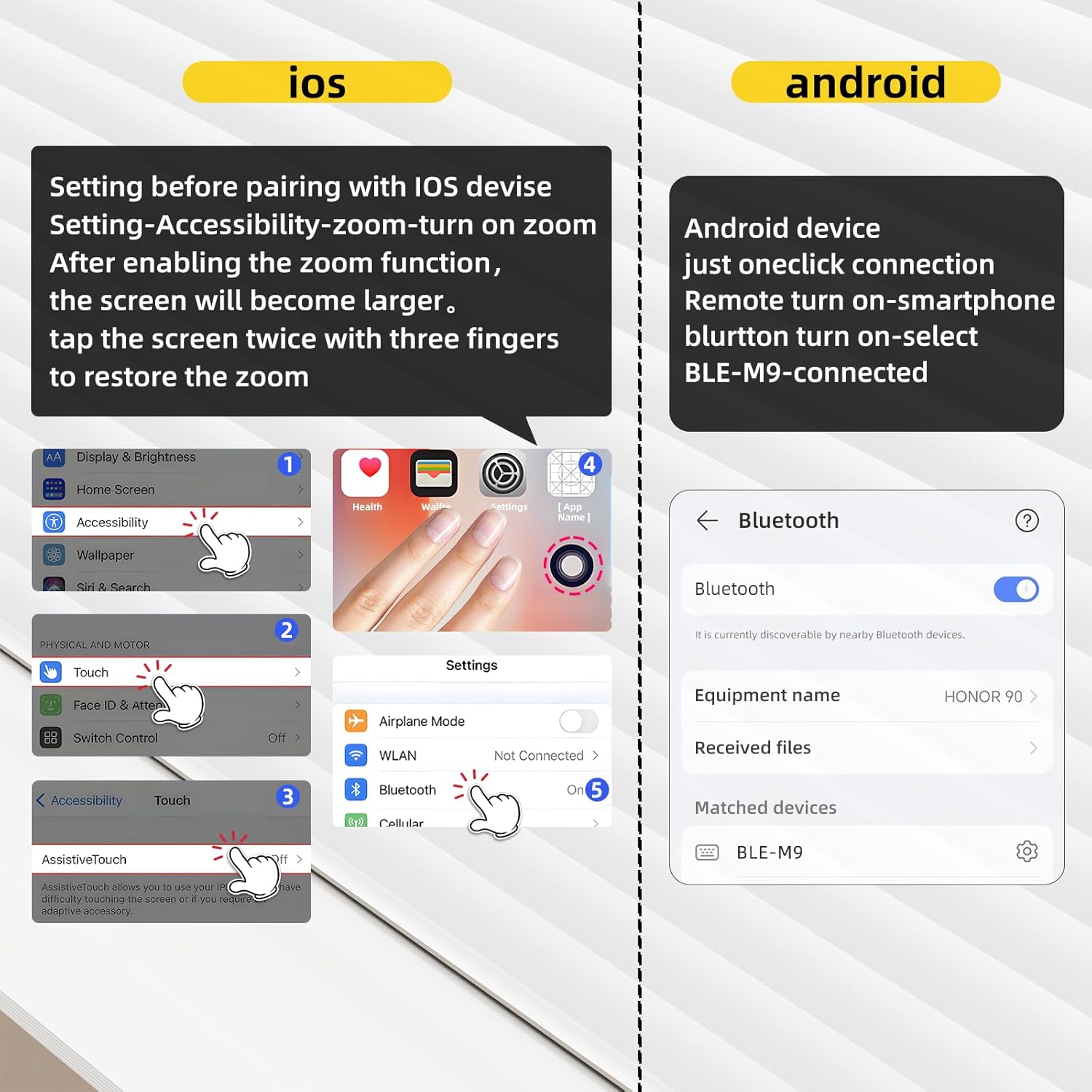 - 【Wide Compatibility & Long Distance Connection】Compatible with iOS (above 14.8 version) and Android devices. Advanced Bluetooth 5.0 chip create a quick, unbreakable connection and you can remotely control the paired devices within 33 feet. It will turn off automatically if without any operation for 5 minutes