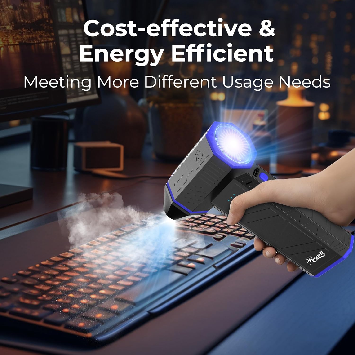 Rosewill Electric Air Duster - 110,000 RPM Super Power Cordless Compressed Air Duster, 3-Gear Adjustable Mini Blower with Fast Charging, Dust Blower for Computer, Keyboard, Pet, House, Outdoor and Car